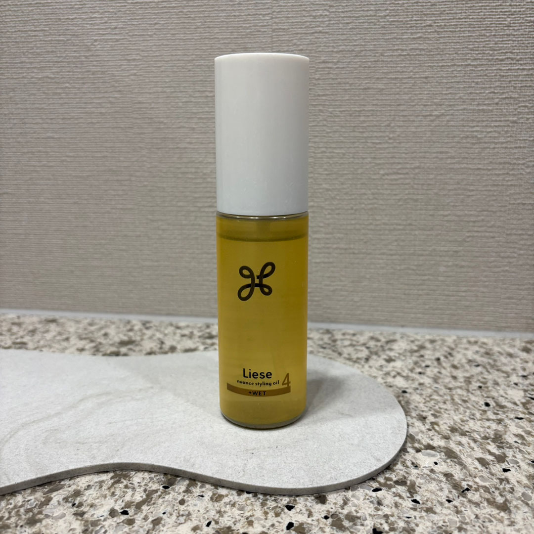 「最近のお気に入りヘアオイルは『リーゼ』のニュアンススタイリングオイル +WET。重めのテクスチャーで、髪の束感やまとまりが出るのがお気に入りです。つけるだけで、しっかり質感が出てスタイリングが決まりやすい!」(WEBディレクター・K/10歳男の子のママ)