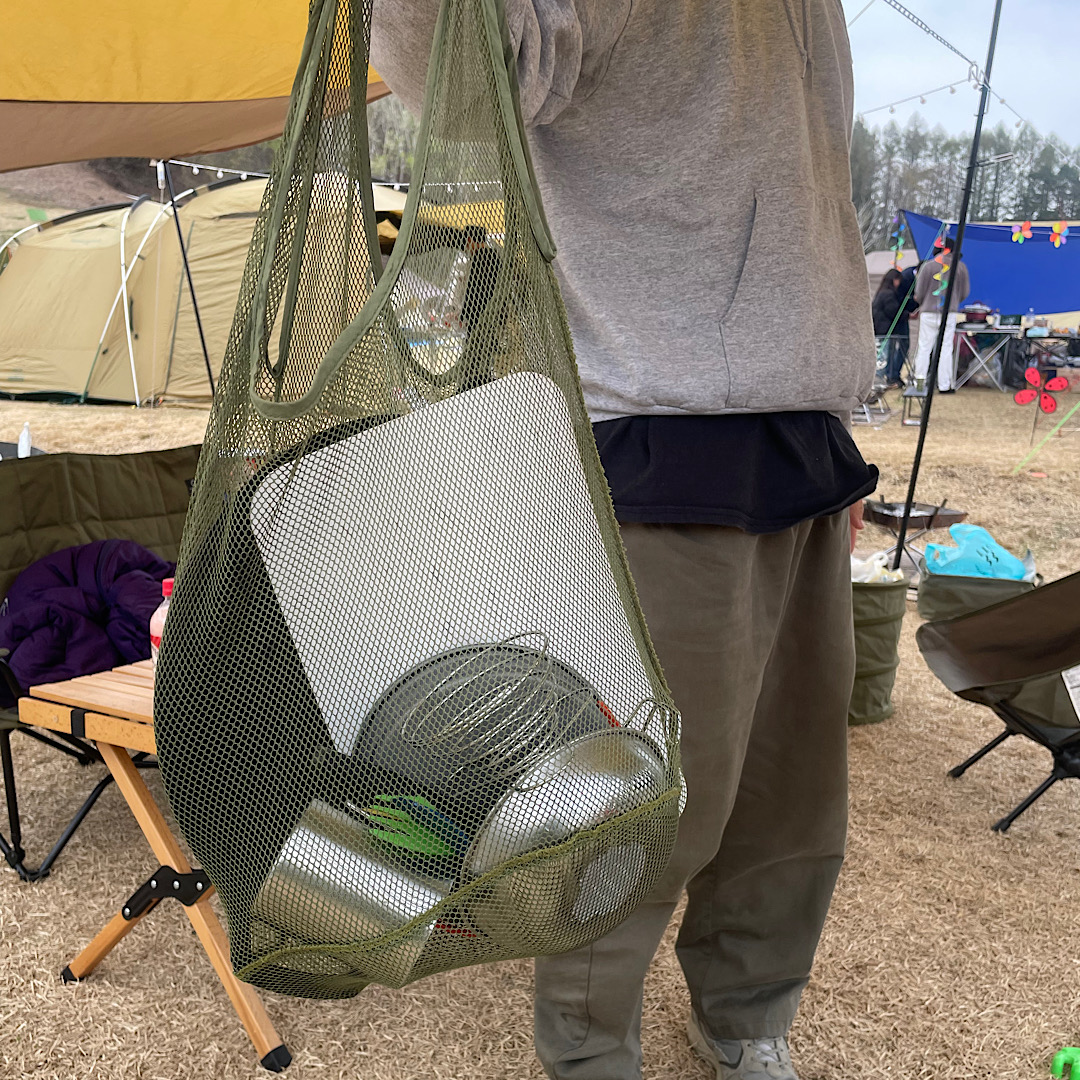そこで閃いたメッシュのエコバッグ!袋だから大量に入れて洗い場まで行き来ができ、袋が汚れてもサッと洗えるので楽ちん!
