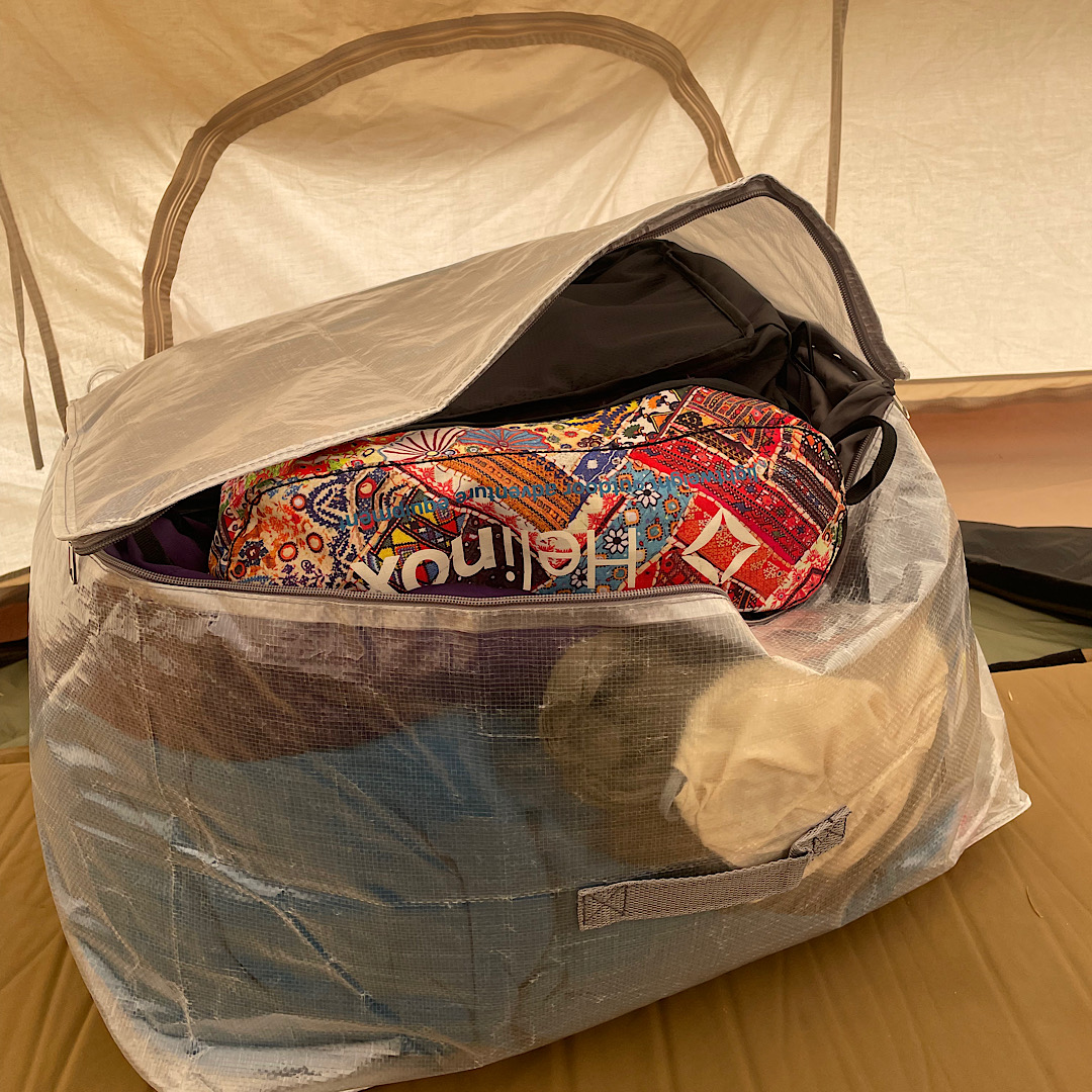 なんて事を思っていたので、この際畳まずに大袋にぶち込ん出しまえ〜!と言うズボラ収納に変えたところ、めちゃくちゃ早くテント内が片付けられるようになりました(*^^*)