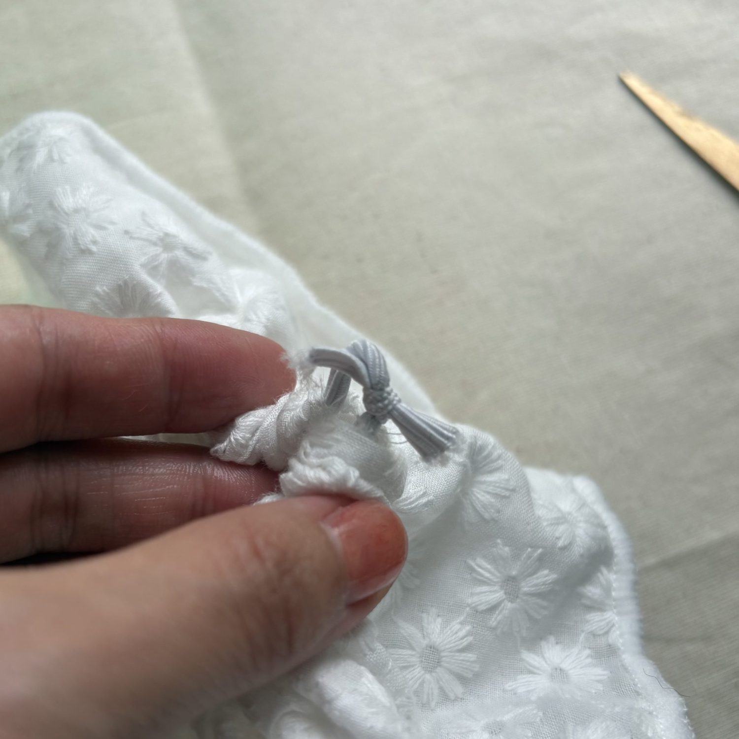 そしてそれを引っ張る。希望のゴムのサイズまでキュッキュッと!