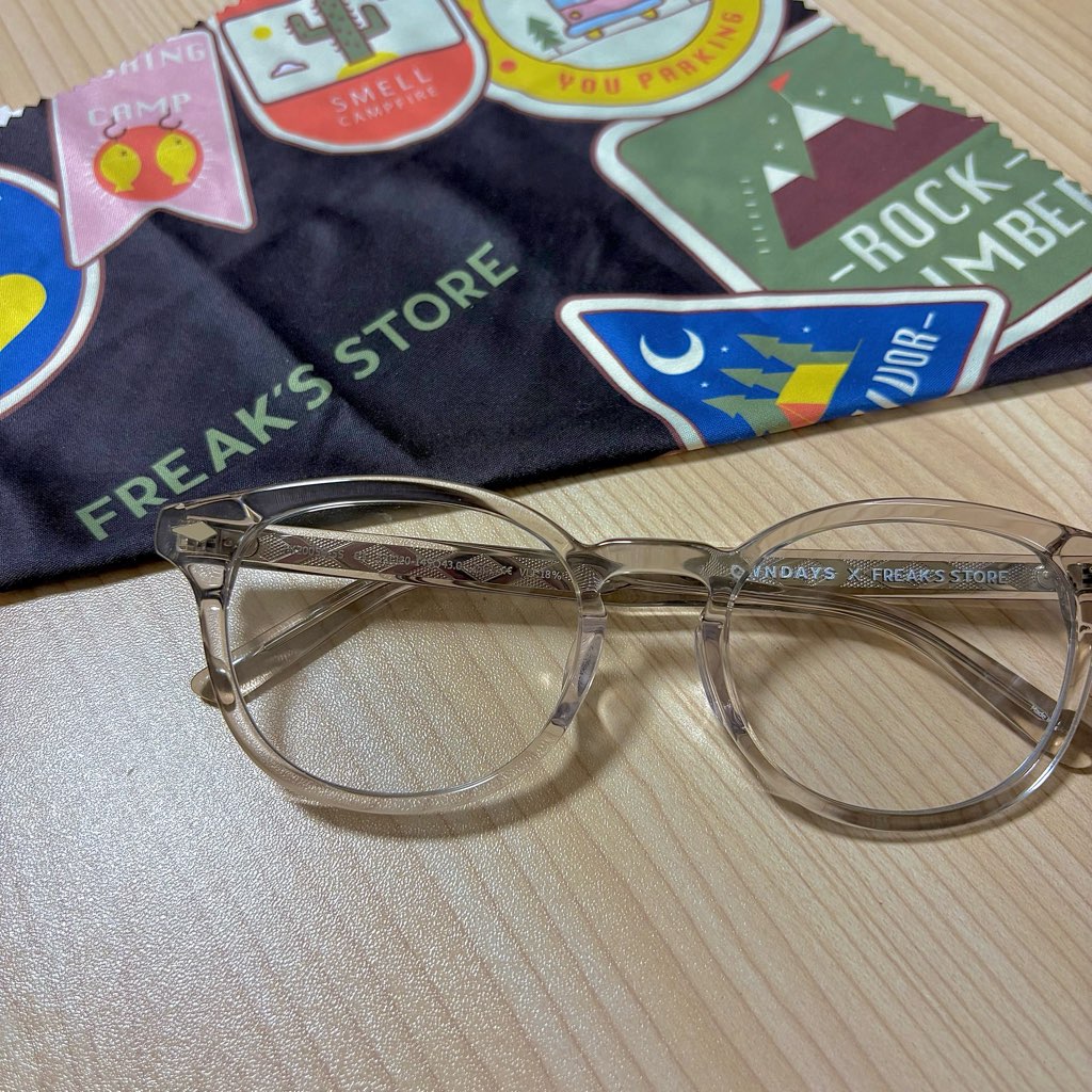 全てのフレームに、耐水性のあるPVC素材のオリジナルケースと、FREAK’S STOREのロゴが入ったカラフルな大判のクロスが付属します❣️
