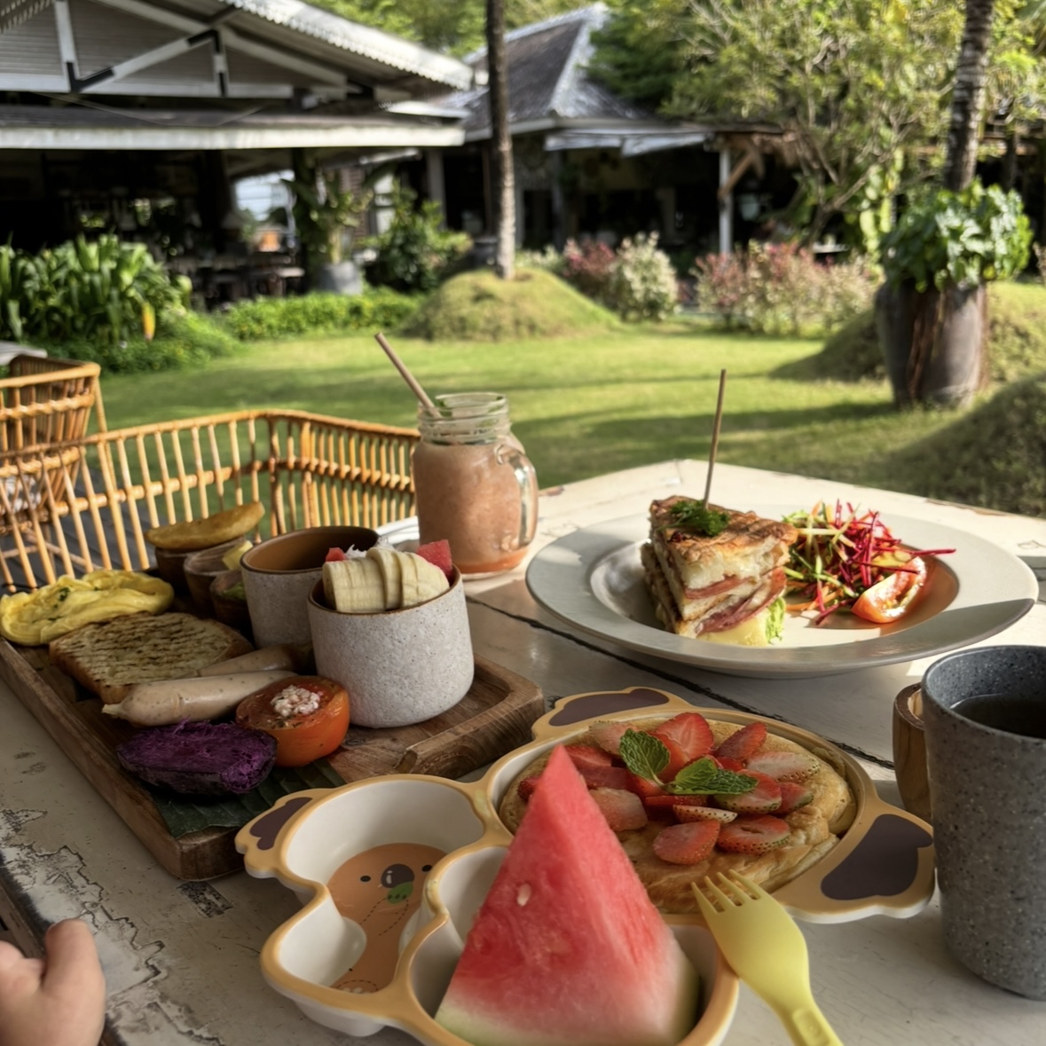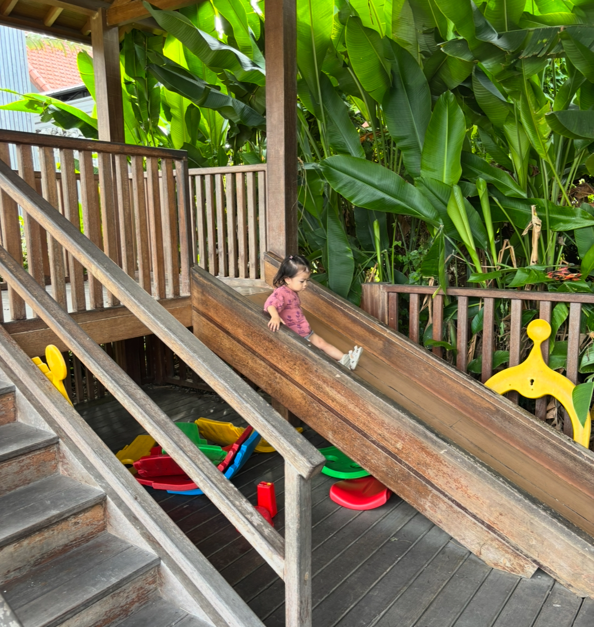 ウブドでのランチに利用した【compound’s warung】にはお座敷席があったよ!キッズチェアもあったのでテーブル席でも安心◎