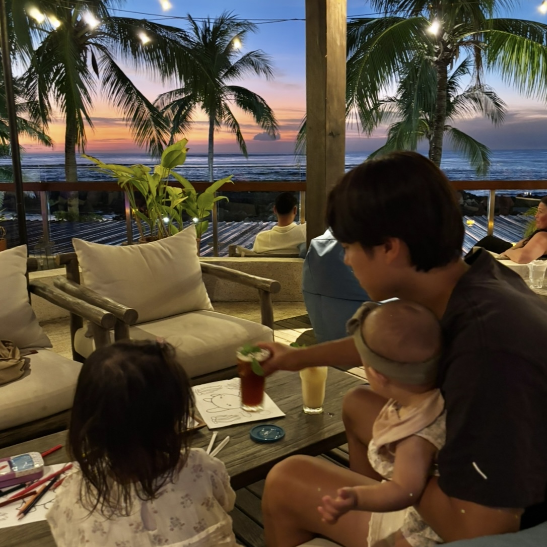 最後の夕飯で訪れたクタの【GIOI ocean gourmet】はビーチビューを楽しみながら美味しいご飯をいただきました!お絵描きセットの貸し出しもあったし、まさかのお砂場もあった!ショッピングセンターにあるので前後でお買い物も楽しめるよ〜