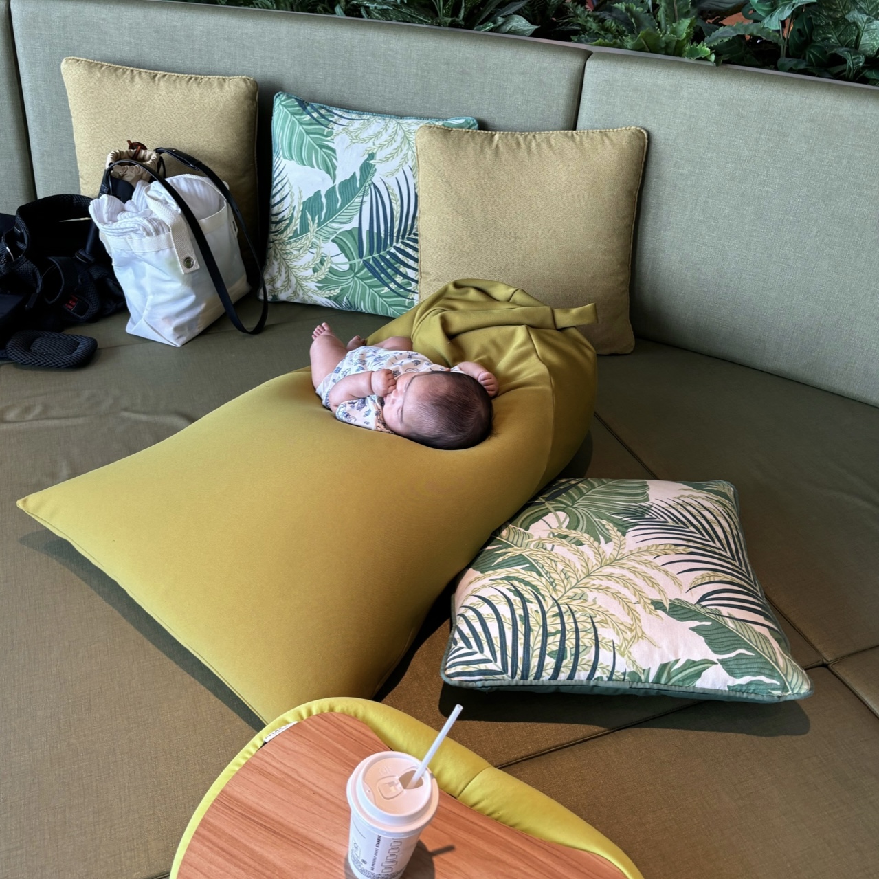 ベビーも寝転んでもらえる場所が沢山あるので安心!(お友達のベビーです)