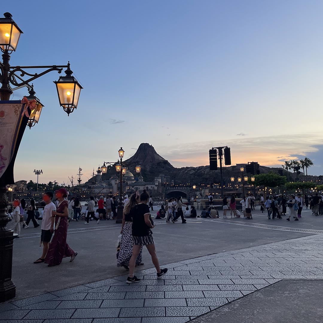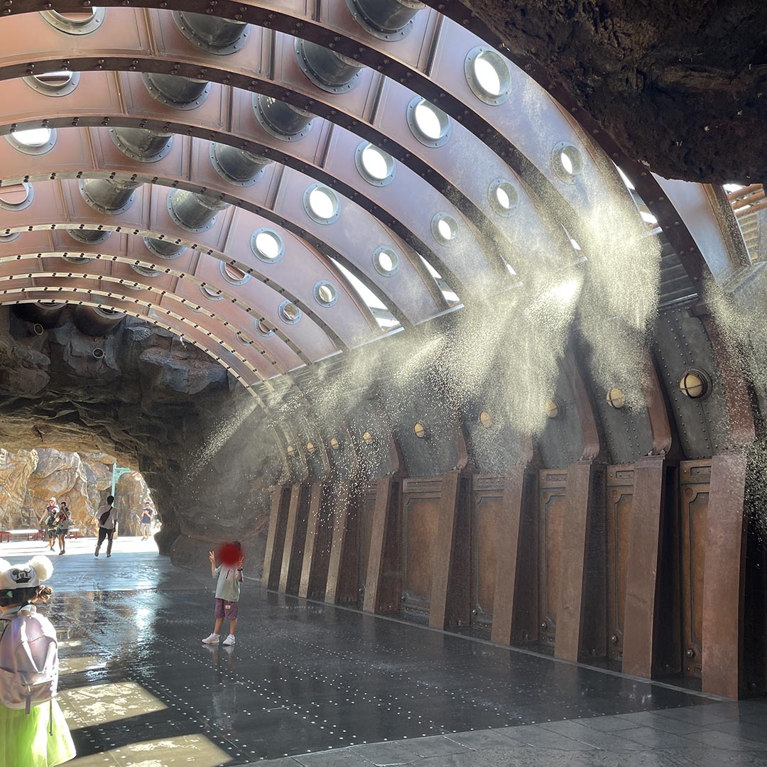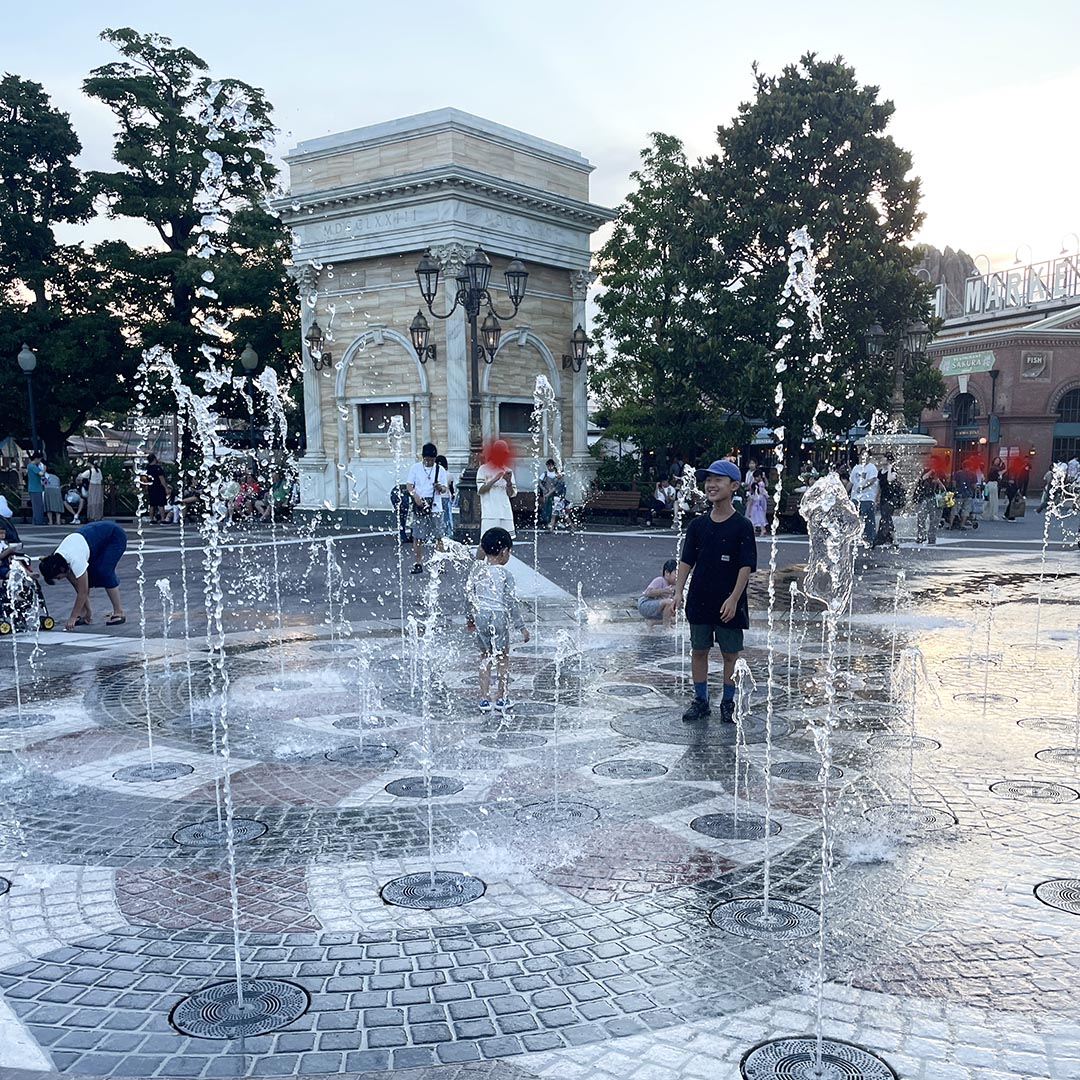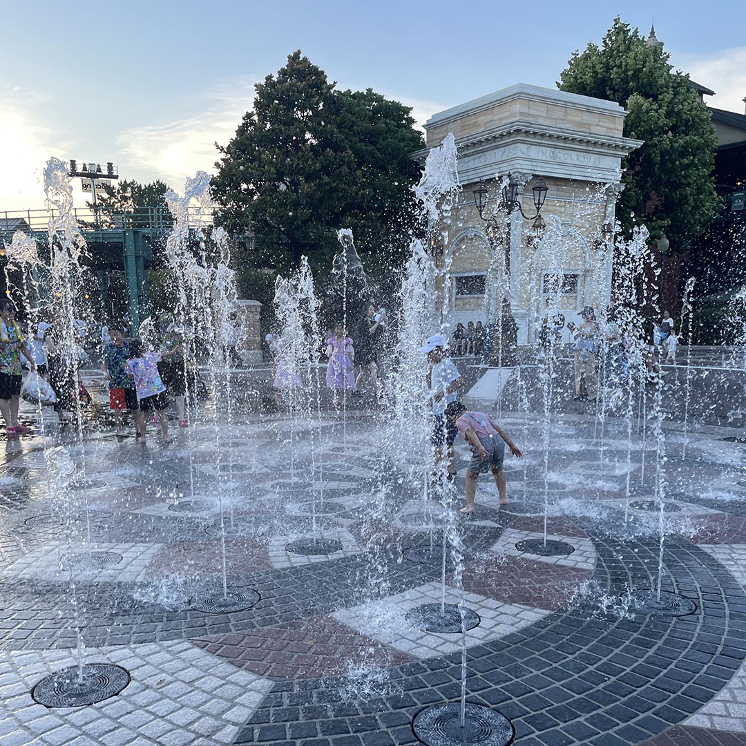 タワー・オブ・テラー前にある広場の地面から不規則に噴水が出ています💦全部の噴水が一気に噴き出す瞬間が盛り上がりますよねw