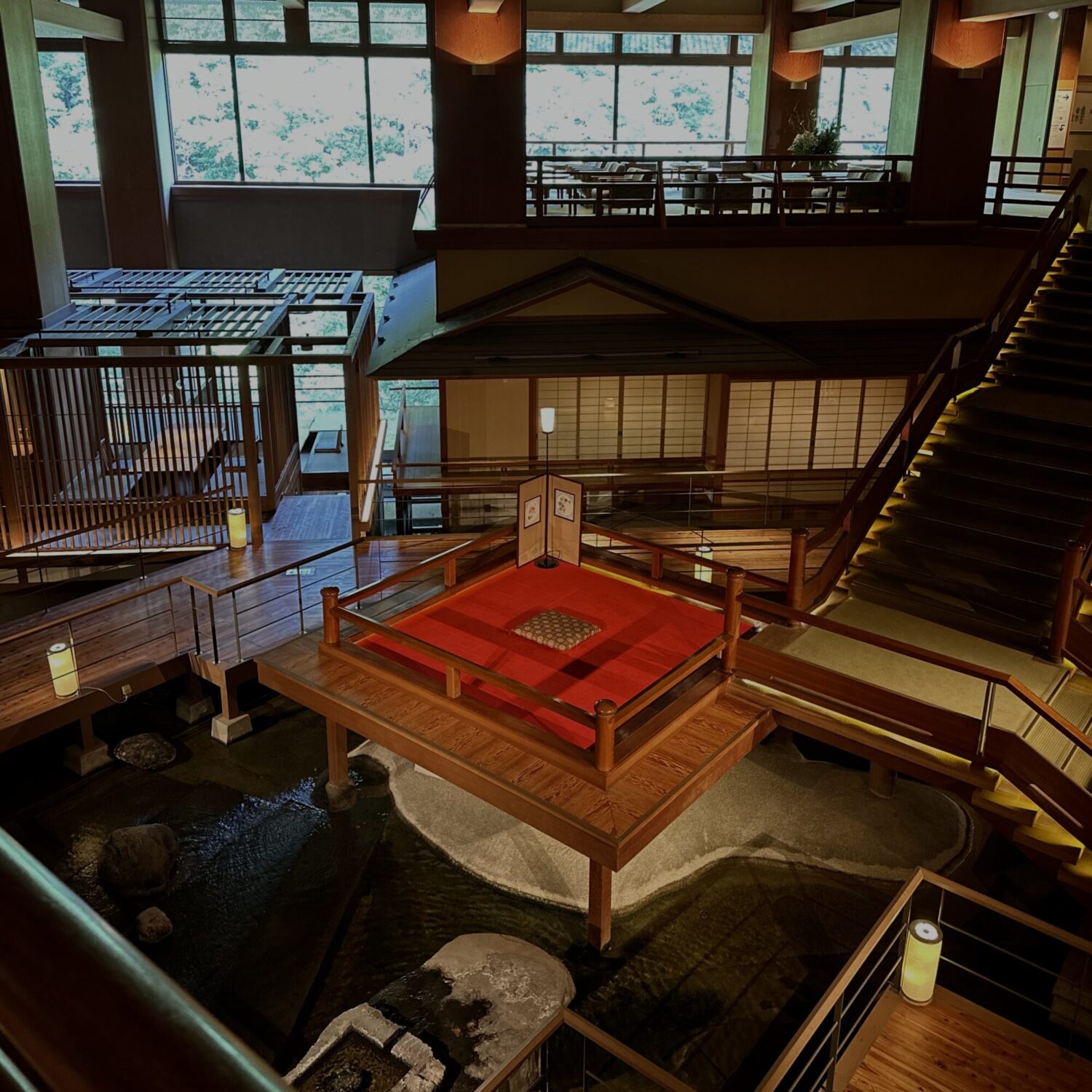 フロントロビーを抜けると目の前に広がる、圧巻の景色!これは「無限城だ〜!」と思わず声に出してしまうほどでした泣