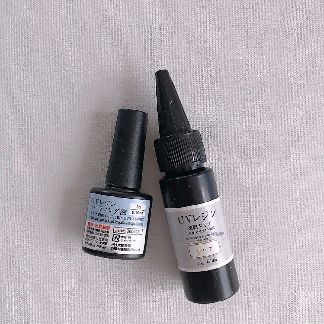 ツヤっとさせたいので、ニスを塗るのでも大丈夫なのですが、今回はレジンを塗って硬化しました。レジンもDAISOで購入したこちらを使いました!