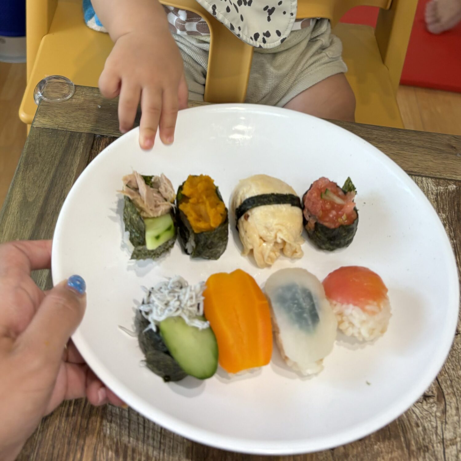 大人はお寿司を準備したので、息子にも「赤ちゃん寿司」を作ってみました🍣
