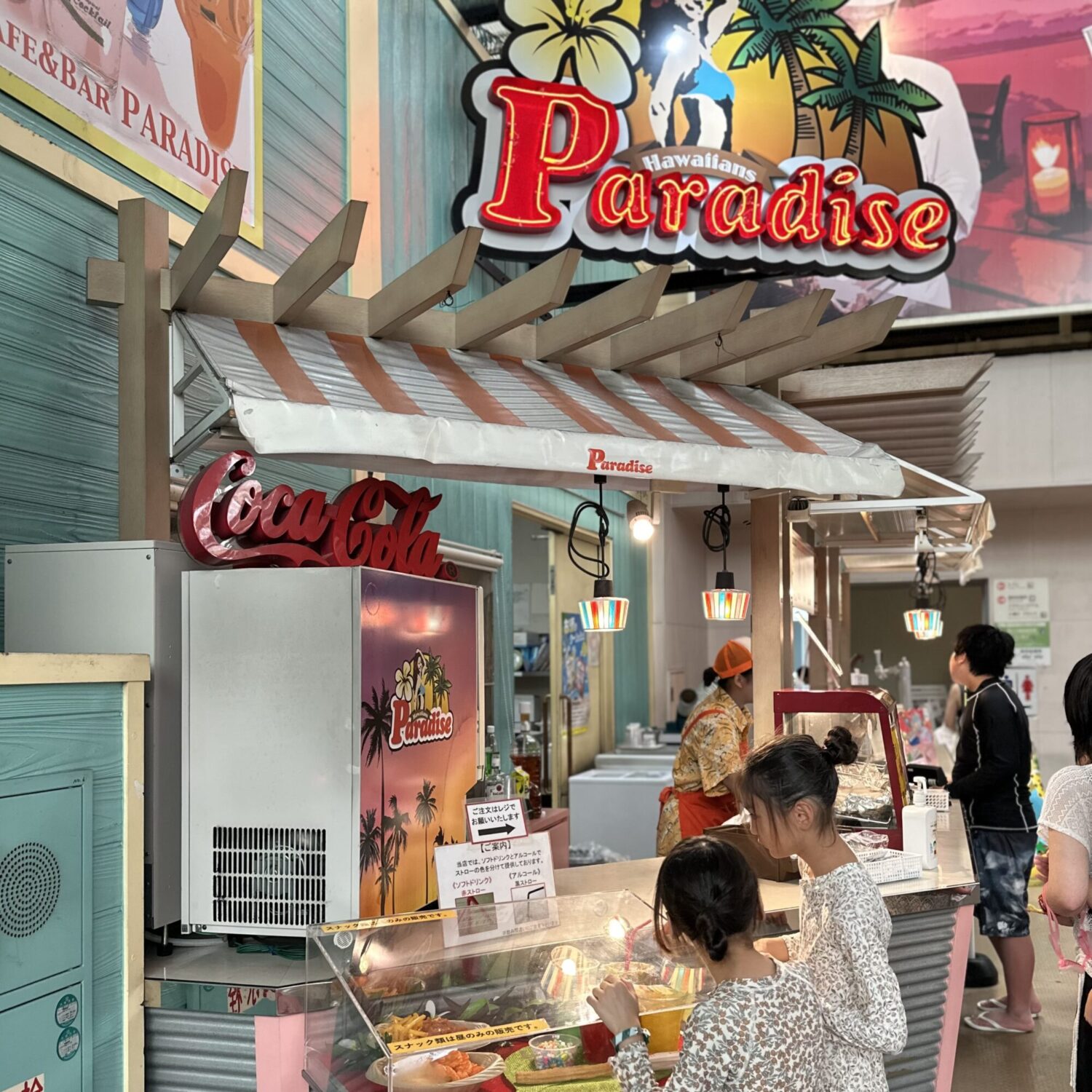 スパリゾートハワイアンズは南国ムード満載!トロピカルなドリンクやアイス、ハンバーガーやロコモコ等、様々な種類のフードが揃っていました!