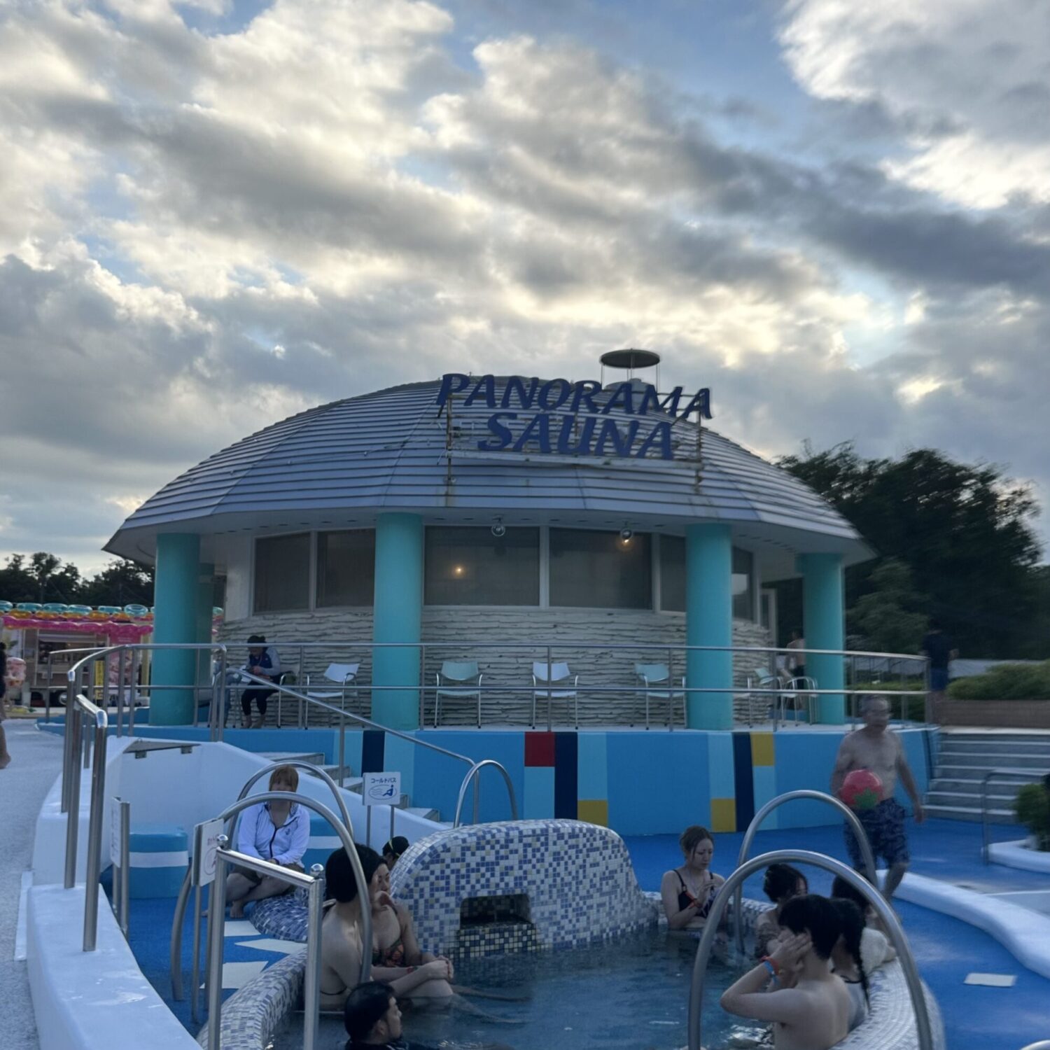 ハワイアンズには屋外の温泉プールもありました!このエリアは、水着のまま男女一緒に入れる温泉なので、水温は温かいです!