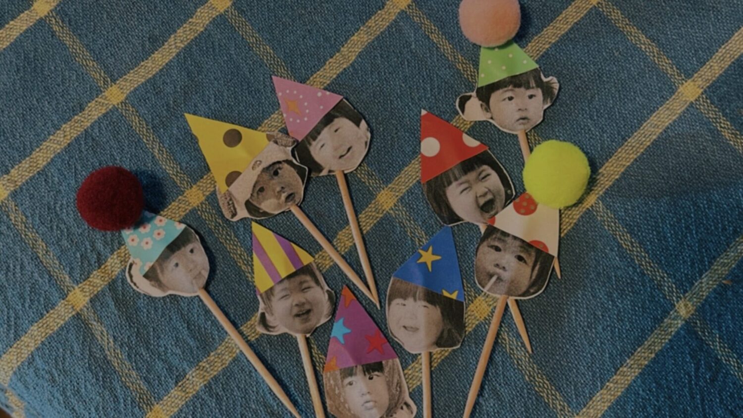 日々、Pinterestで可愛いパーティースタイルを収集していたので、とっても流行っている子供の顔写真を印刷して、ケーキピックを作りました!
