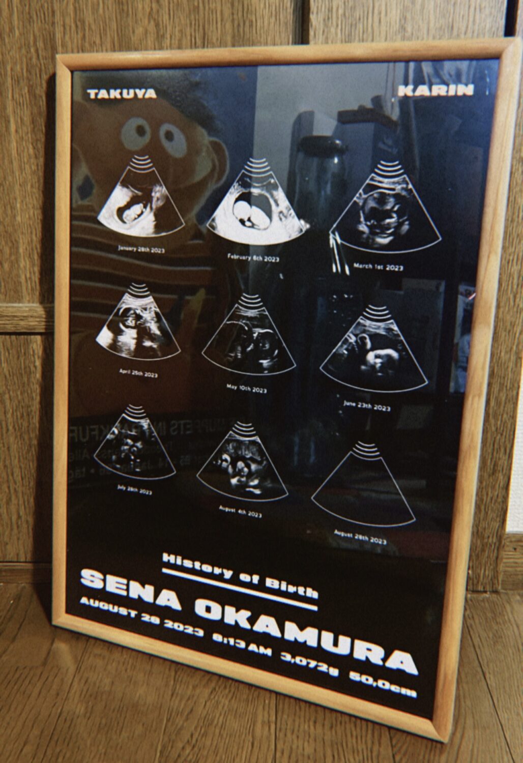 デザイン系の仕事をしている兄に、娘が生まれた時にお願いしていたエコー写真を使ったデザインポスターを2年越しに・・♡