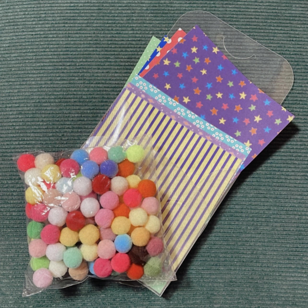 まずは、帽子にかわいい柄を被せてあげたくて、Amazonでかわいい柄の折り紙とポンポンを購入。