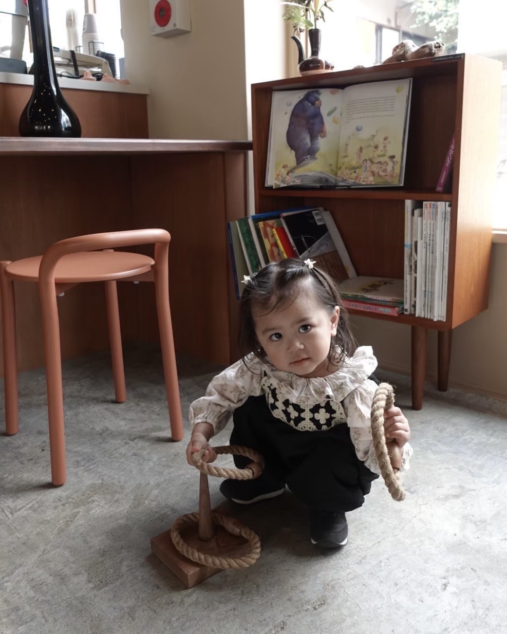 カウンター前には絵本なども置いてありママのお茶時間を子供が退屈せず過ごせます!
