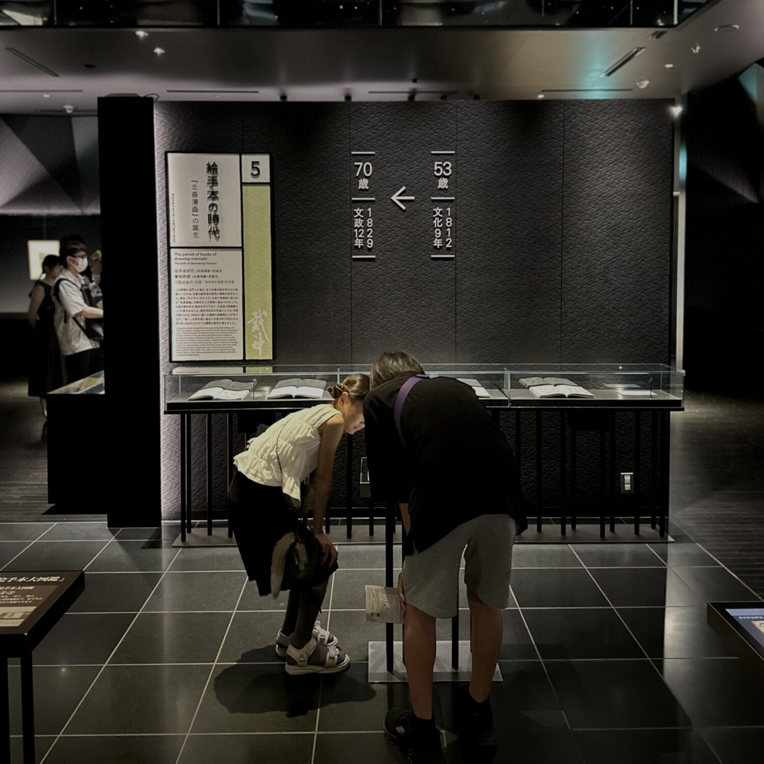 ここには年代順に北斎の歴史が展示されているのですが、子供達はもっぱらタッチパネルのゲームに夢中ww