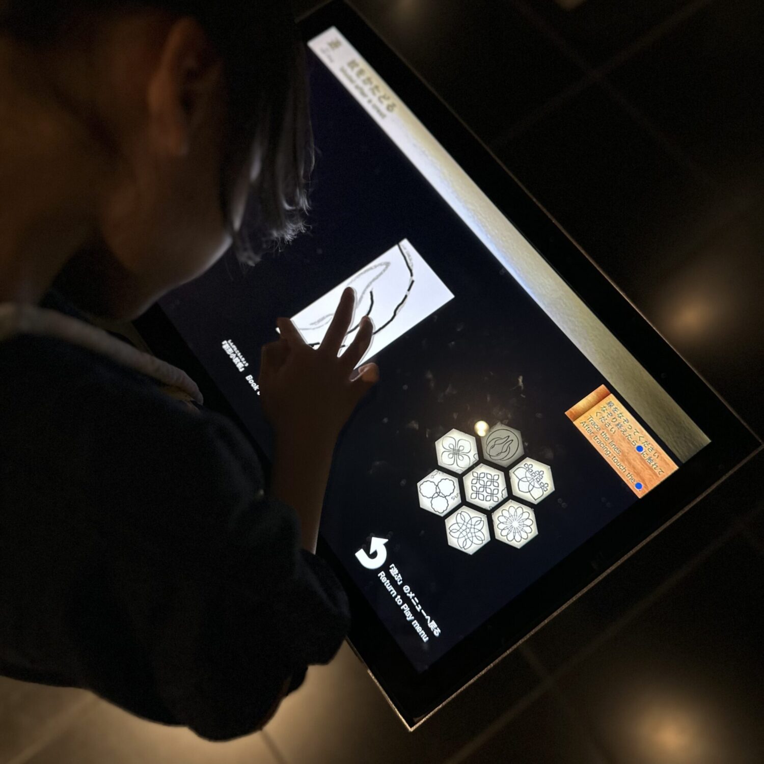 ゲーム内容も沢山あって、北斎の描いた絵から富士山を探すゲームや紋様を書くゲームなど、5歳児の次女から中1の長男まで、家族みんなで楽しめる内容でした◎