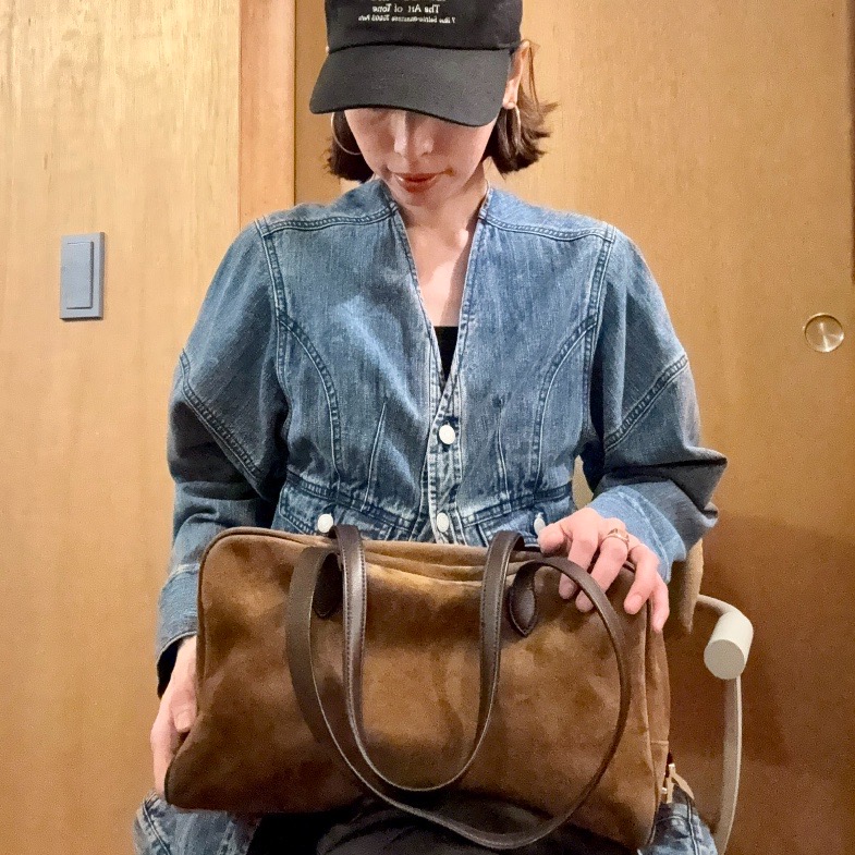 同じ大きさでブラウンのスエードは品切れ中ですが、定期的に入荷があるので気になる方はチェックしてみて下さい。ちなみに最近、新入荷したもので同じデザインでスモールサイズが出てました◎私もまた購入を検討しています。