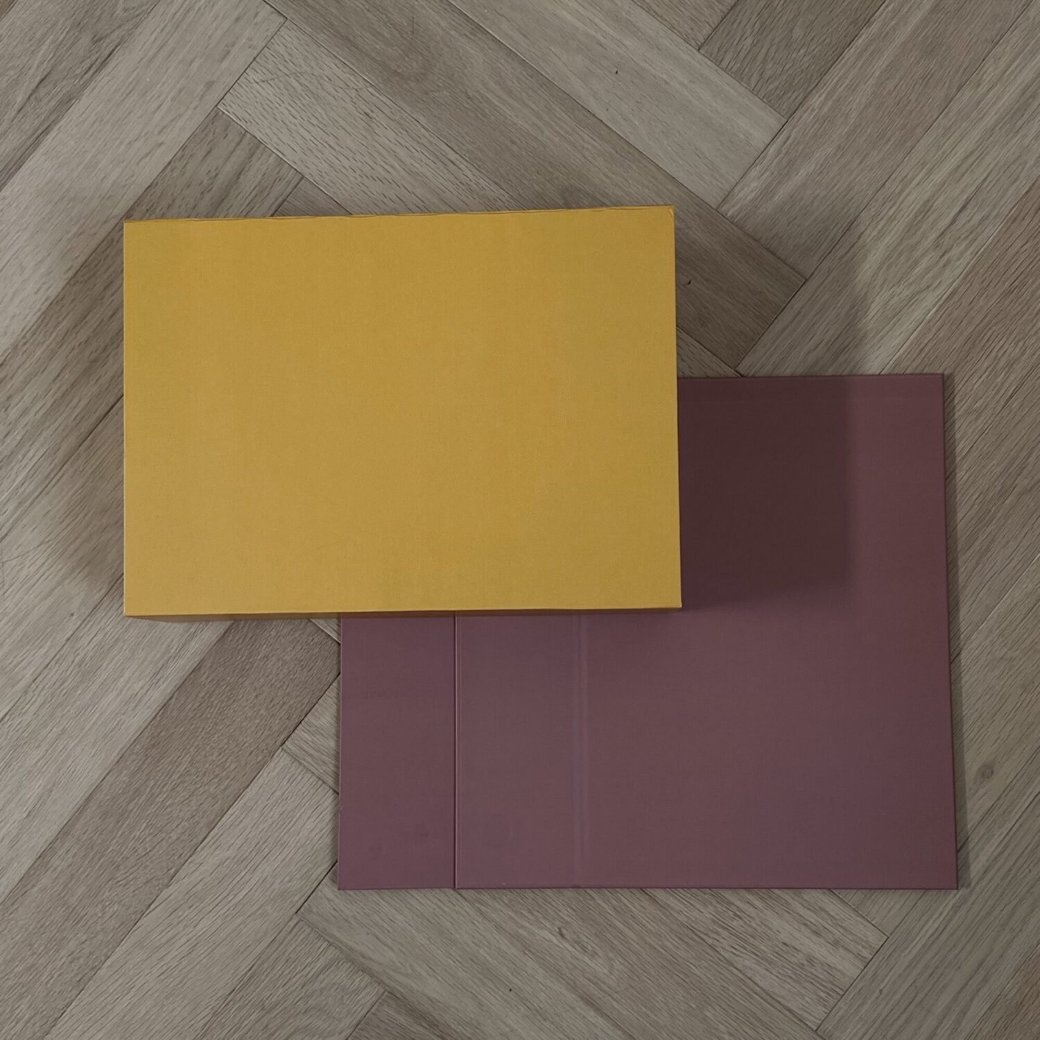ボックス自体は厚い紙で出来ていて、使わない時はマグネットを外して↑の写真(RED)のように開けば、薄くぺったんこになるのでこれまた収納に便利。