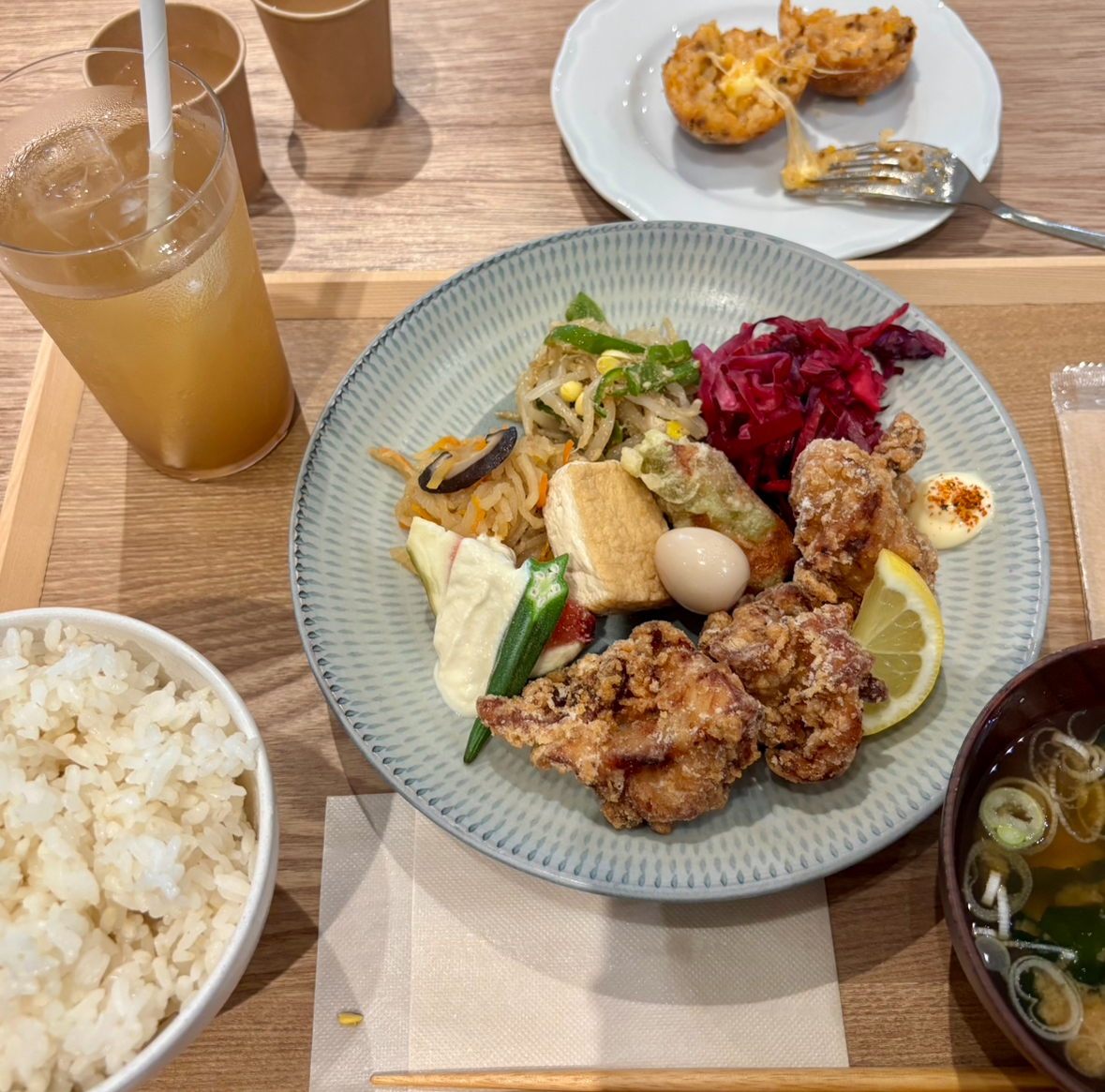 レジ横にずらっと並ぶ焼き菓子に心奪われながら、私は唐揚げ定食、旦那さんはカレー、娘に分けてたら少し足りないかな?と思ってアランチーニを注文しました!
