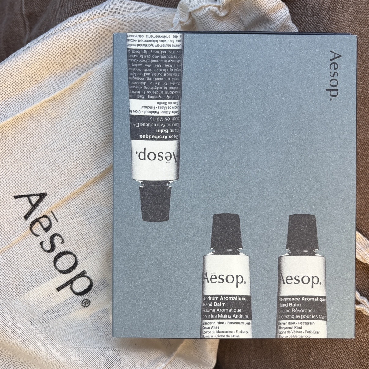 Aesopのハンドクリームがとても好きなんですが、とにかく大きかった。もちろんそれも悪くなかったんですが、持ち運ぶ時は結局コンパクトな物を持って出たり…小さいサイズがあったらなぁ。と思っていた矢先に、まさかの人気の3種類がミニサイズでセットに!!