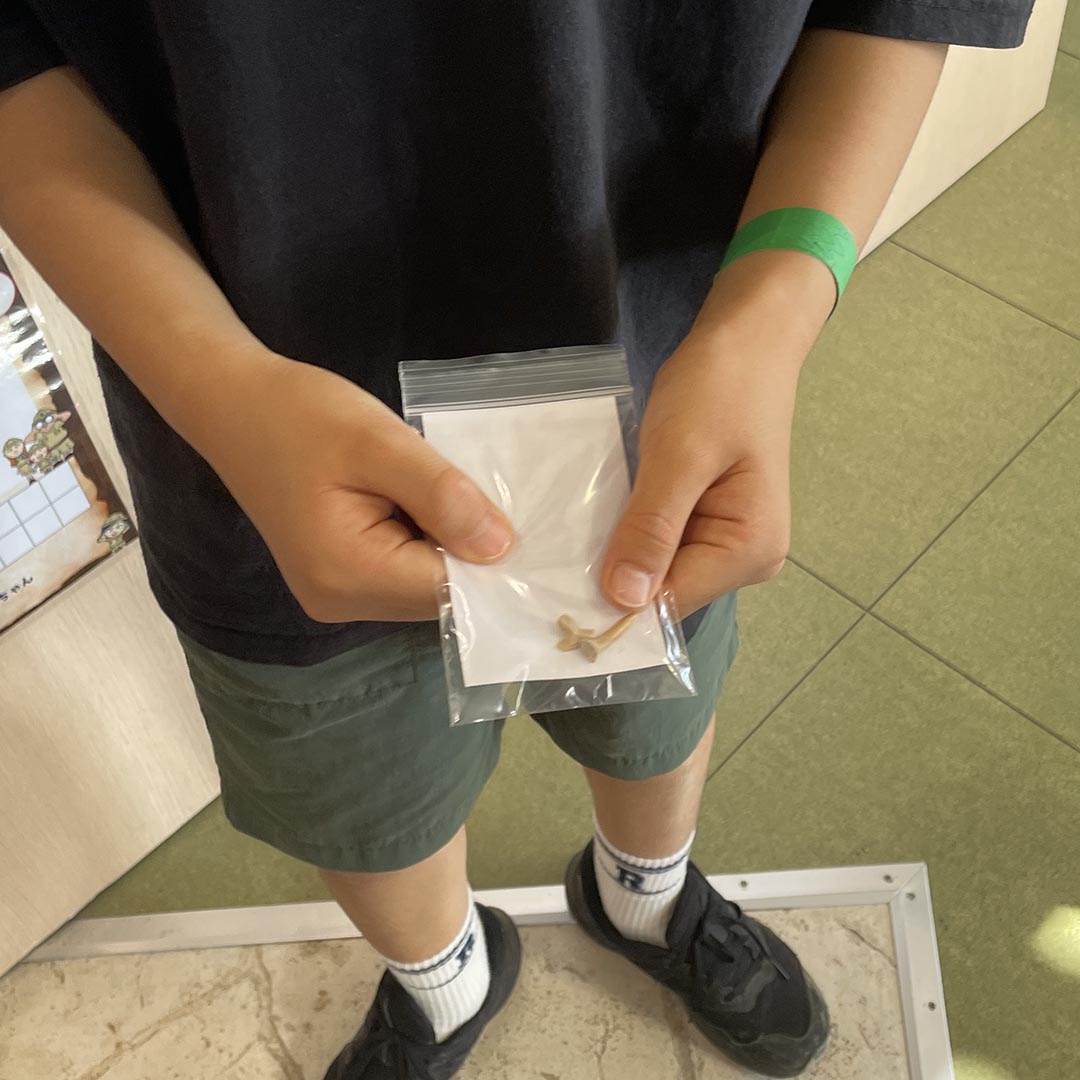 長男も古代サメの歯をなんとか発見‼️受付に持って行くと、説明書付きの袋に入れてくれます👀