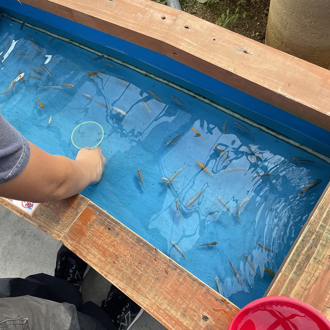 熱帯魚すくいでは、ポイを使って何匹取れるかな❓2つポイがもらえますが、動きが早いのでなかなか難しい…🐠
