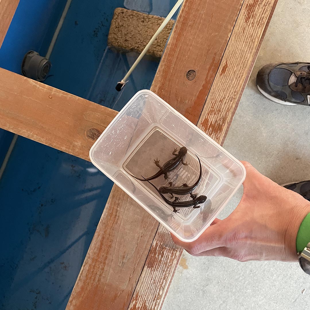 イモリ釣りは餌で釣ります🦎こちらは食い付きますがなかなか釣る事ができず…ですが、パパは才能を開花し3匹ほど釣れていました🤭