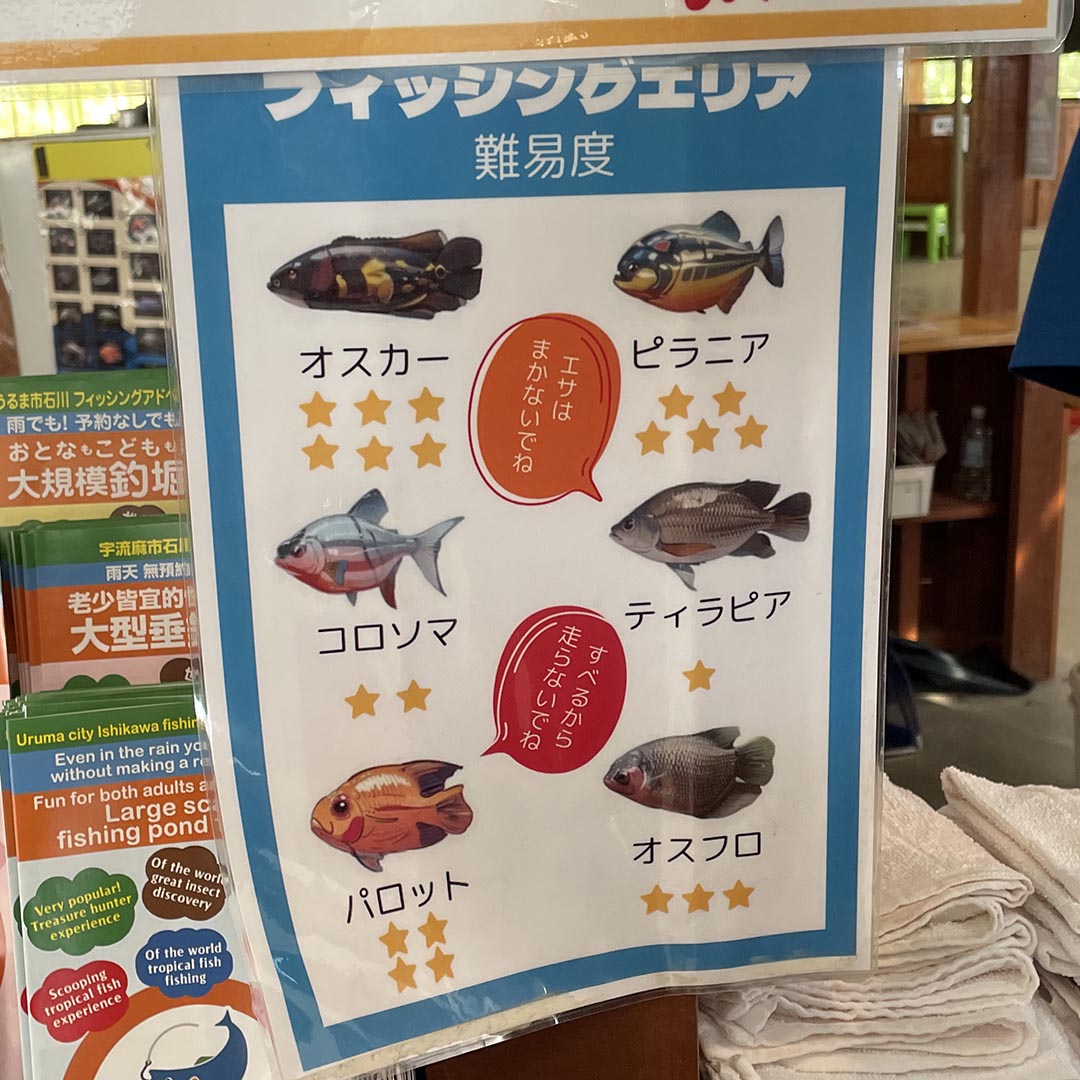 最後はフィッシングエリアです🎣大きな生簀が6つも‼️受付で竿と餌を借りてレベル別の生簀へ🐟