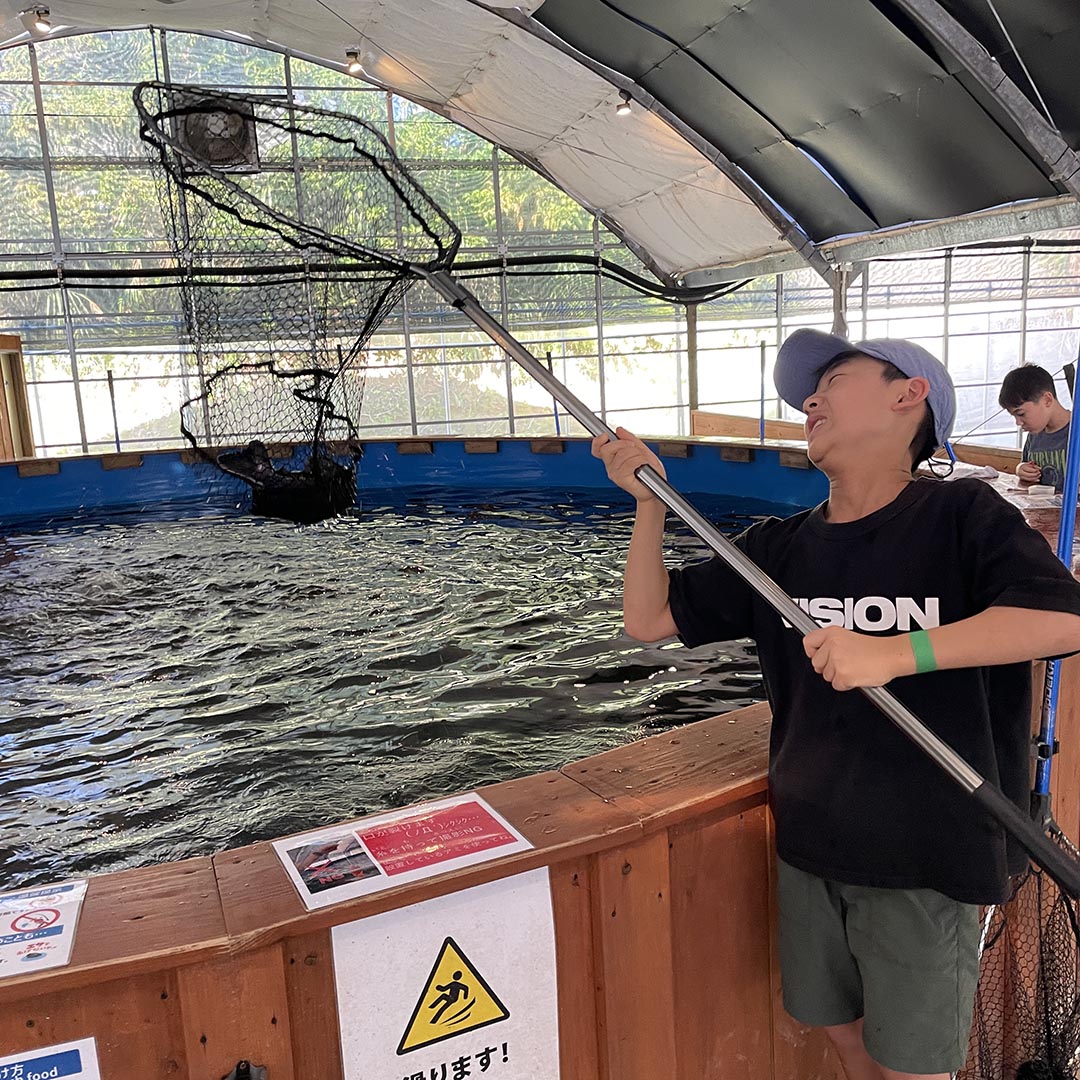 こちらのエリアでは、釣り針を使用しない釣り体験ができます🎣