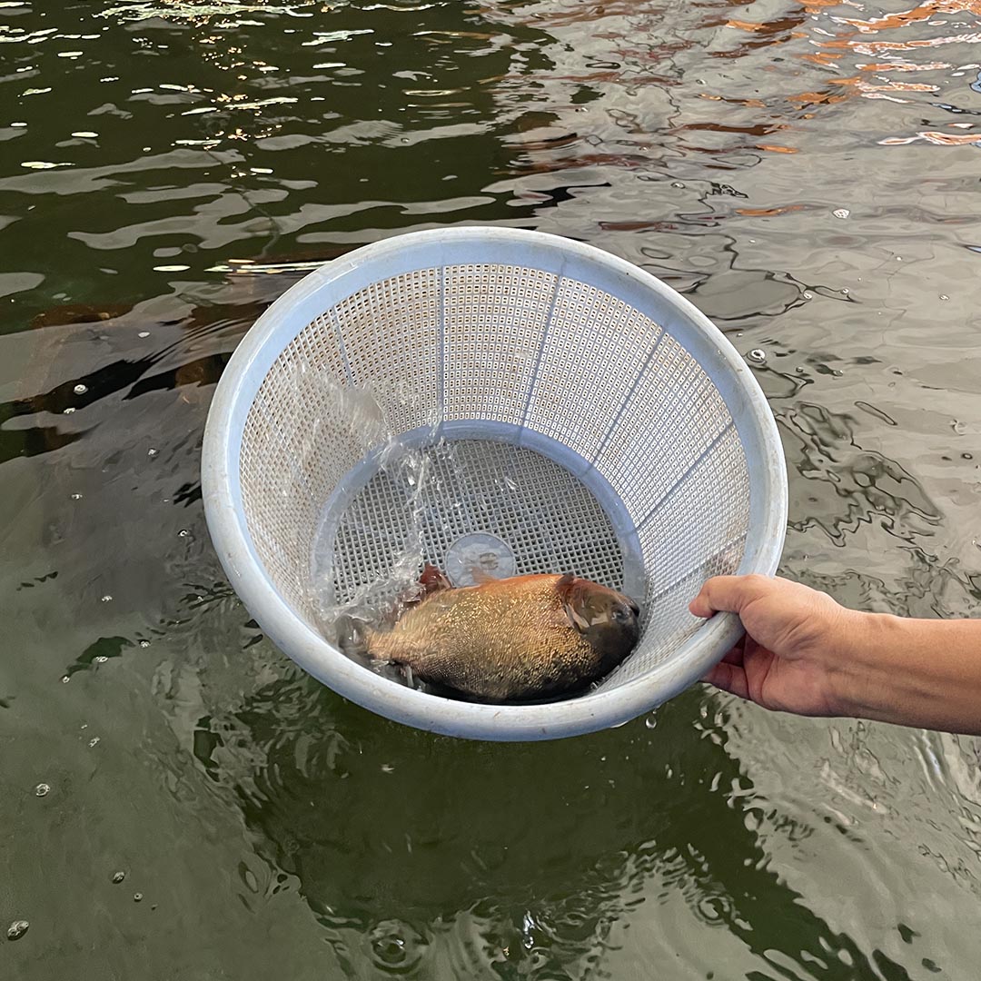ティラピアやオスフロはすぐに釣る事が出来、長男も吊り上げて大興奮〜🔥結構大きくて、網で救うのに一苦労💦