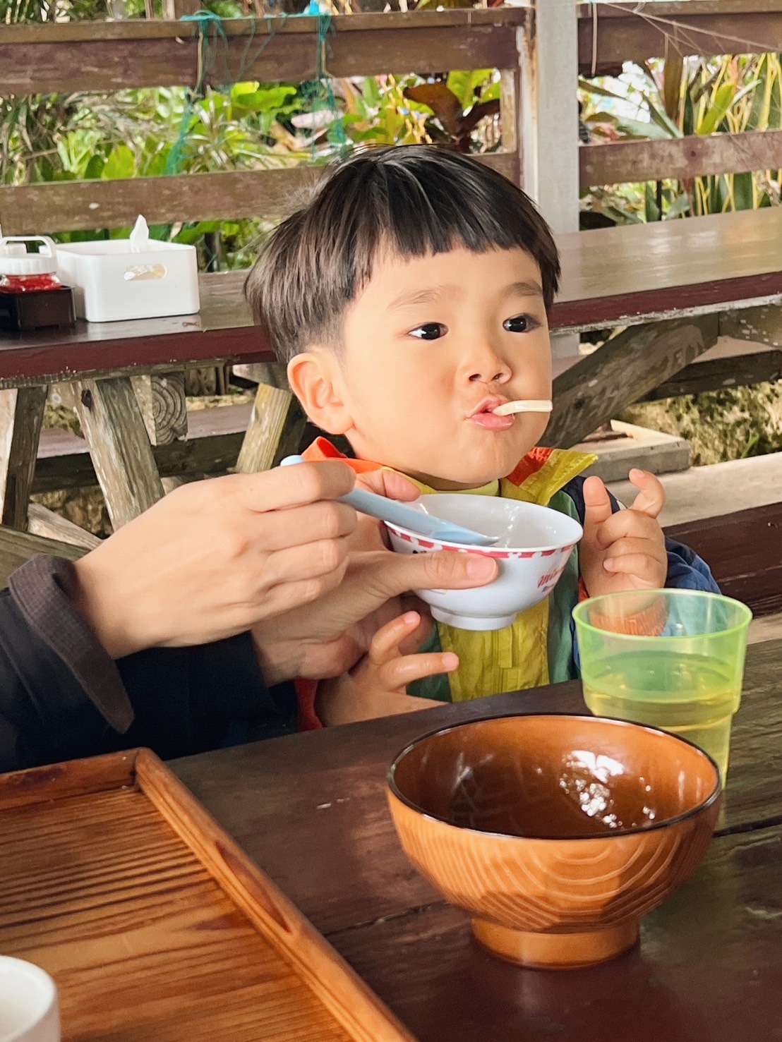 奥武島で取れたもずくづくしのお店。もずくの練りこまれたそば、もずくゼリーにもずく酢。もずく好きな我が子たちは大興奮でした!お子様そばセットもあるのは嬉しいポイントです。