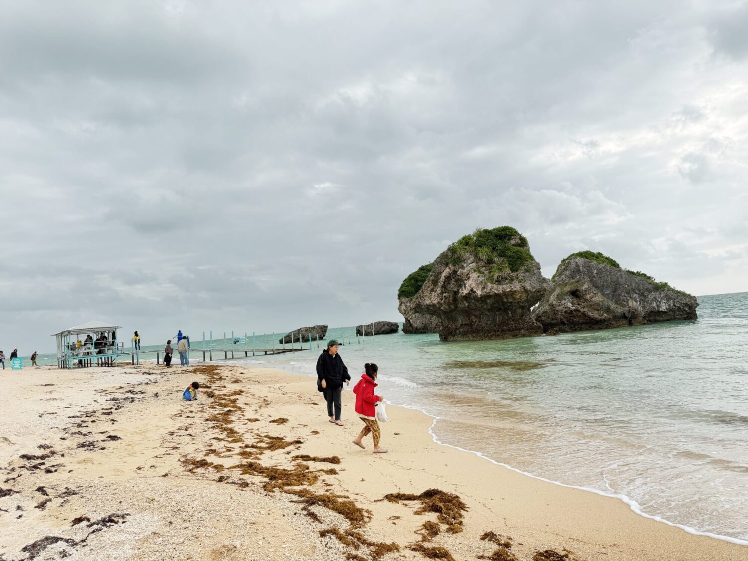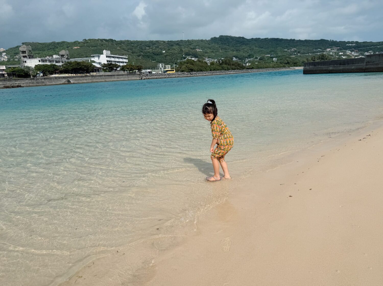 奥武島の橋のたもとにあるビーチは透明度が高く、波も穏やかで浅いので小さい子でも足をつけるだけなら安全に遊べました!