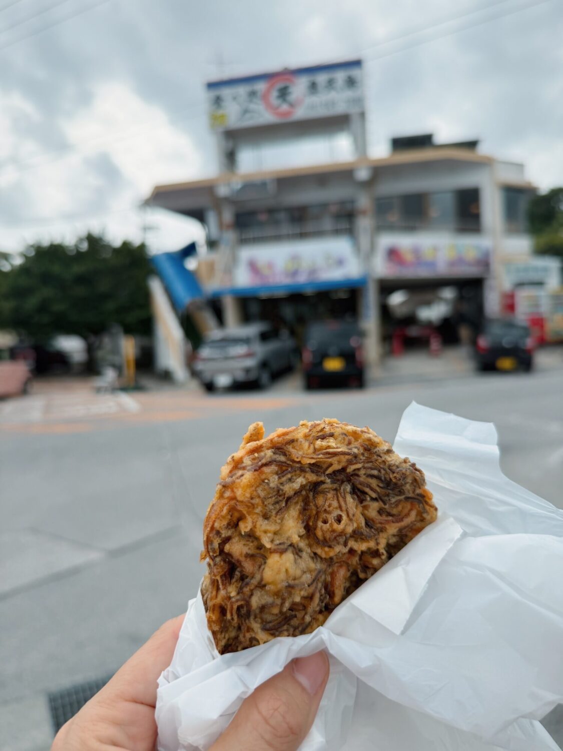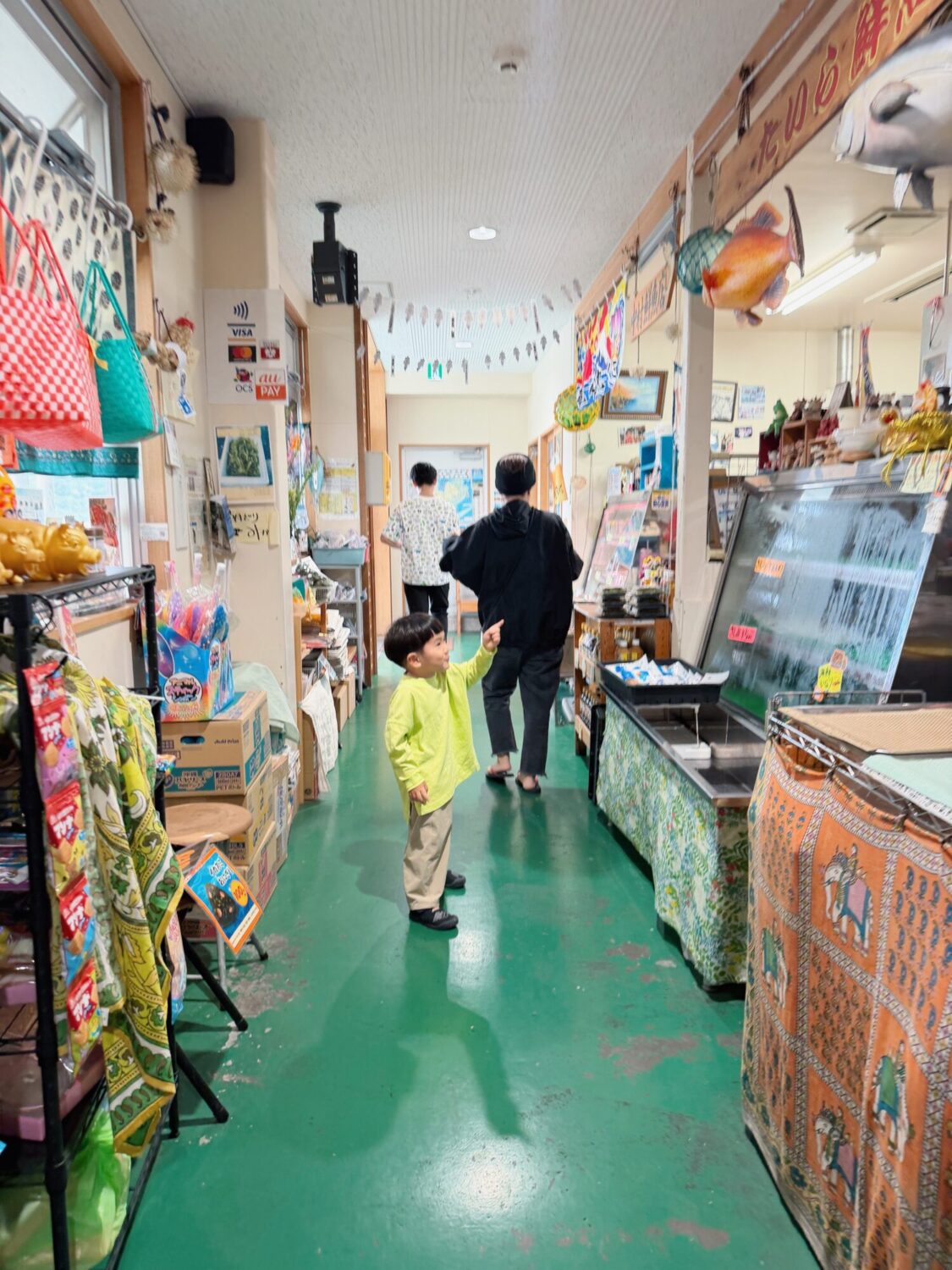 ここに来たら必ず食べる一品です!子どもたちはさつまいも天ぷらがお気に入りな様子でした。その後は鮮魚店などが並んでいるいまいゆ市場へ!