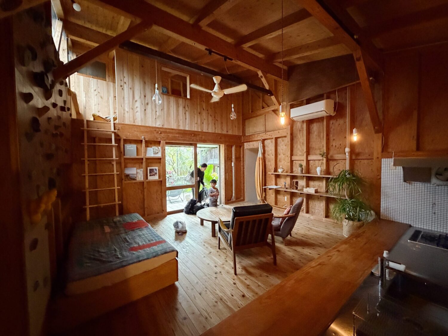 壁にはボルダリング!宿にいる時間はほぼずっとここで遊んでいました。