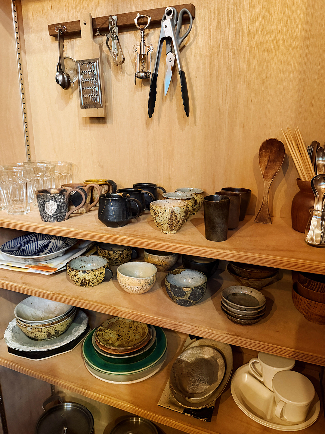 自由に使える食器棚には沖縄の作家さんたちの作品がずらり。
