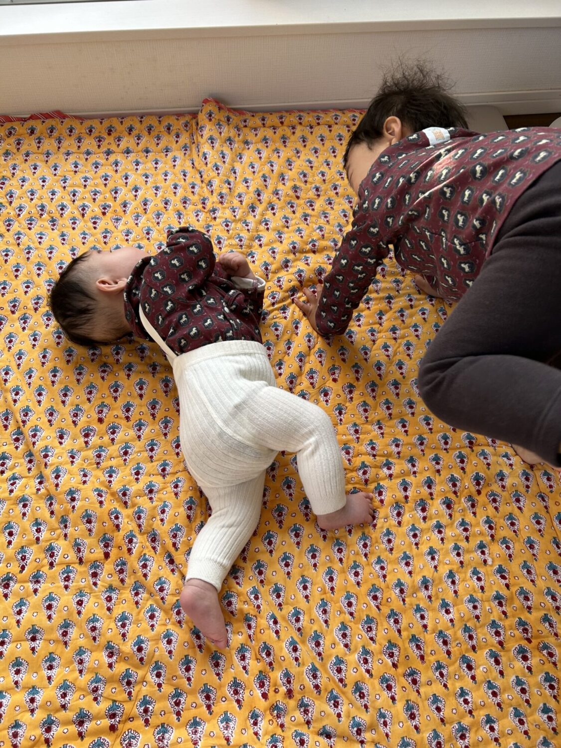 寝返り特訓中の妹を見守る兄 (笑)