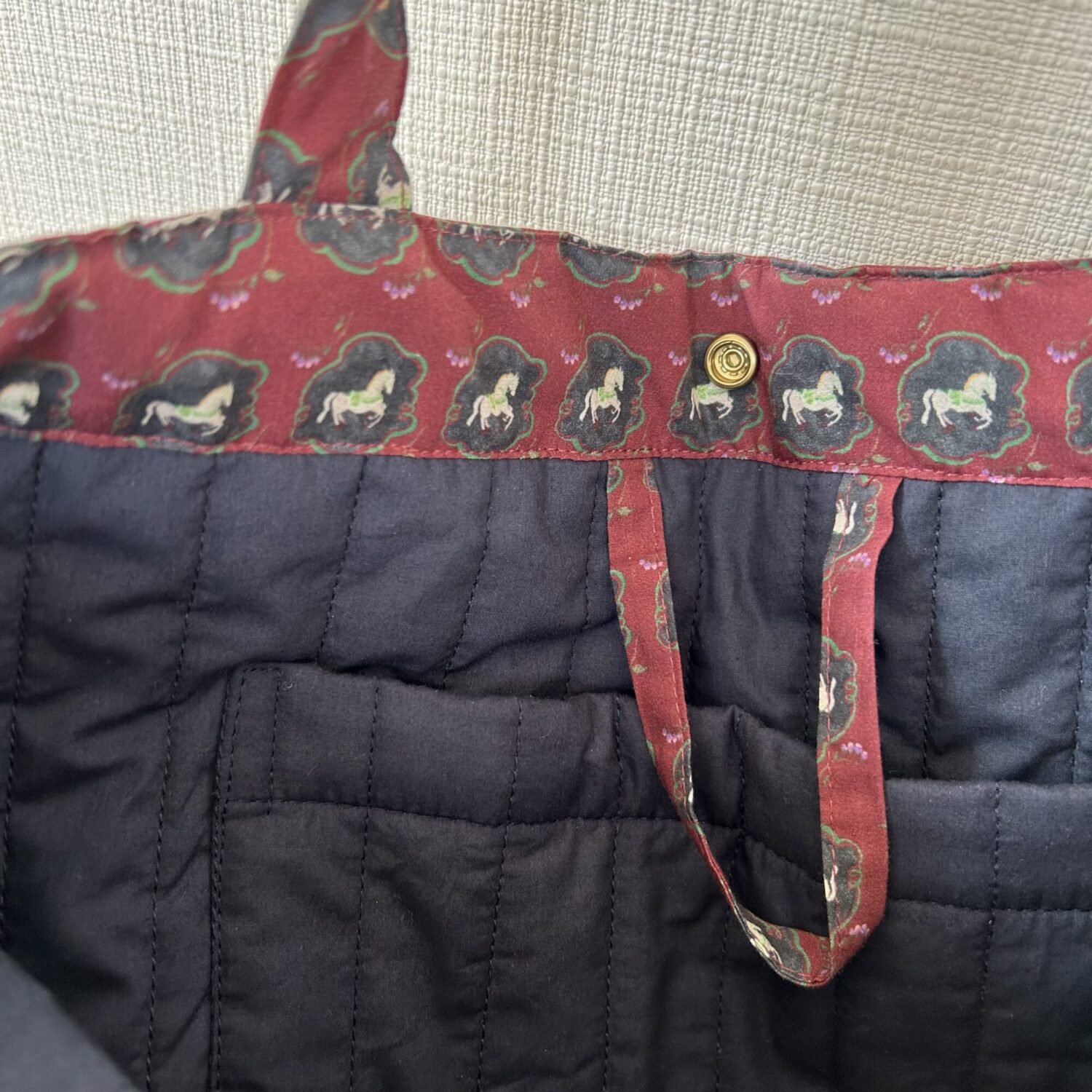 中綿入りキルトなので丈夫だし、今はわたしがマザーズバッグとして使っていずれはこどもたちに譲りたいなと思ってます