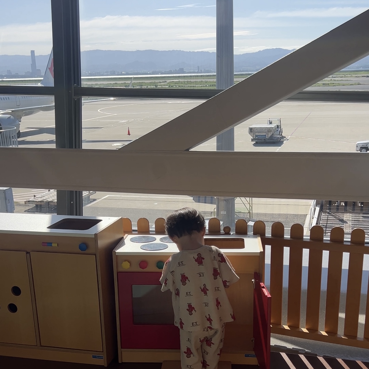 関空到着、ちょうどベトナム行きの横にキッズスペースがあるので少し遊んでもらい機内へ。