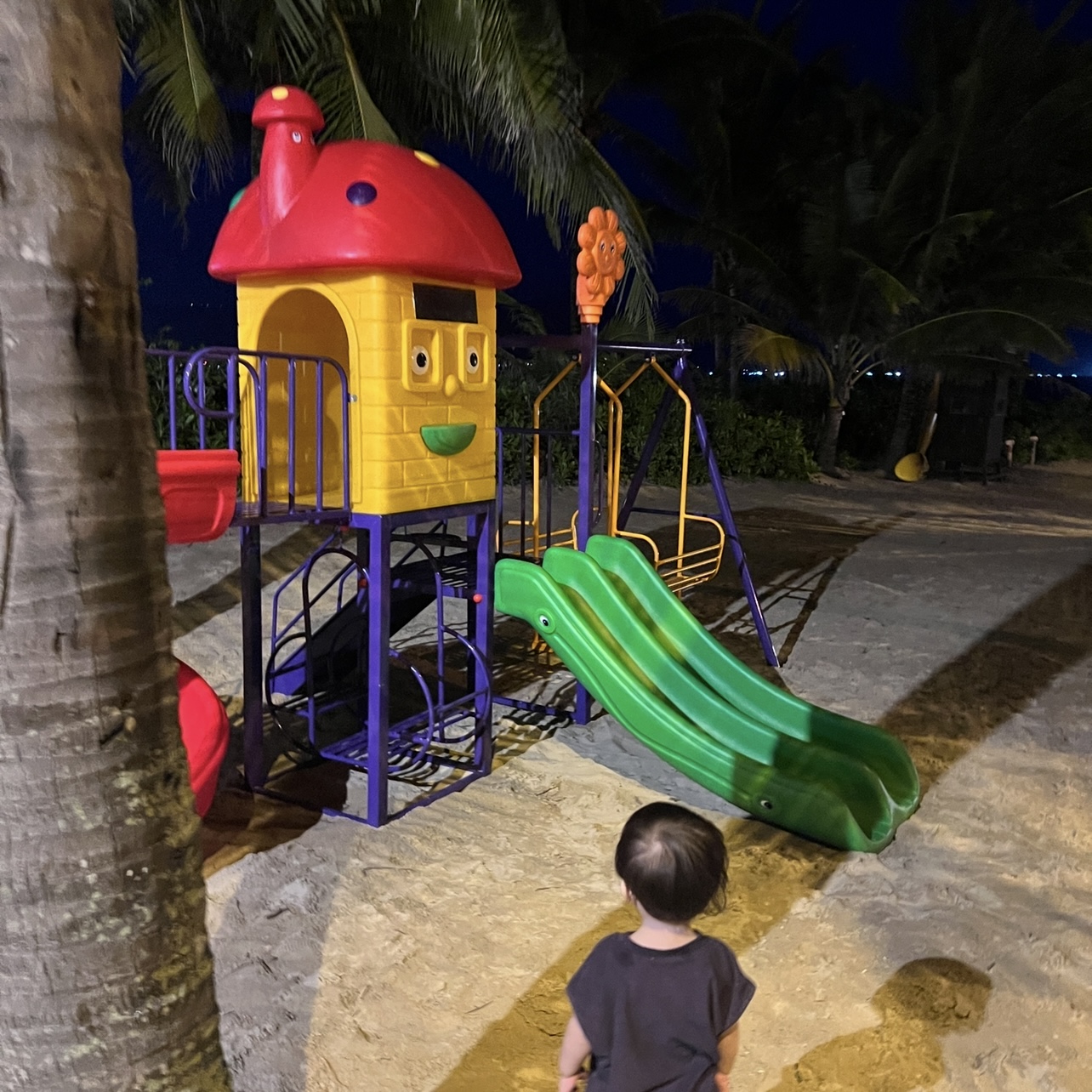 ちなみに、ホテルのビーチにも遊具があります✨夜ご飯に行く前に運動してもらいました。⭐️