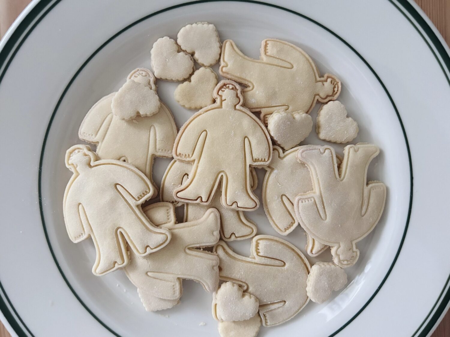 今回は、体にやさしい「米粉クッキー」をオリジナルイラストのクッキー型で焼いてみました☺︎