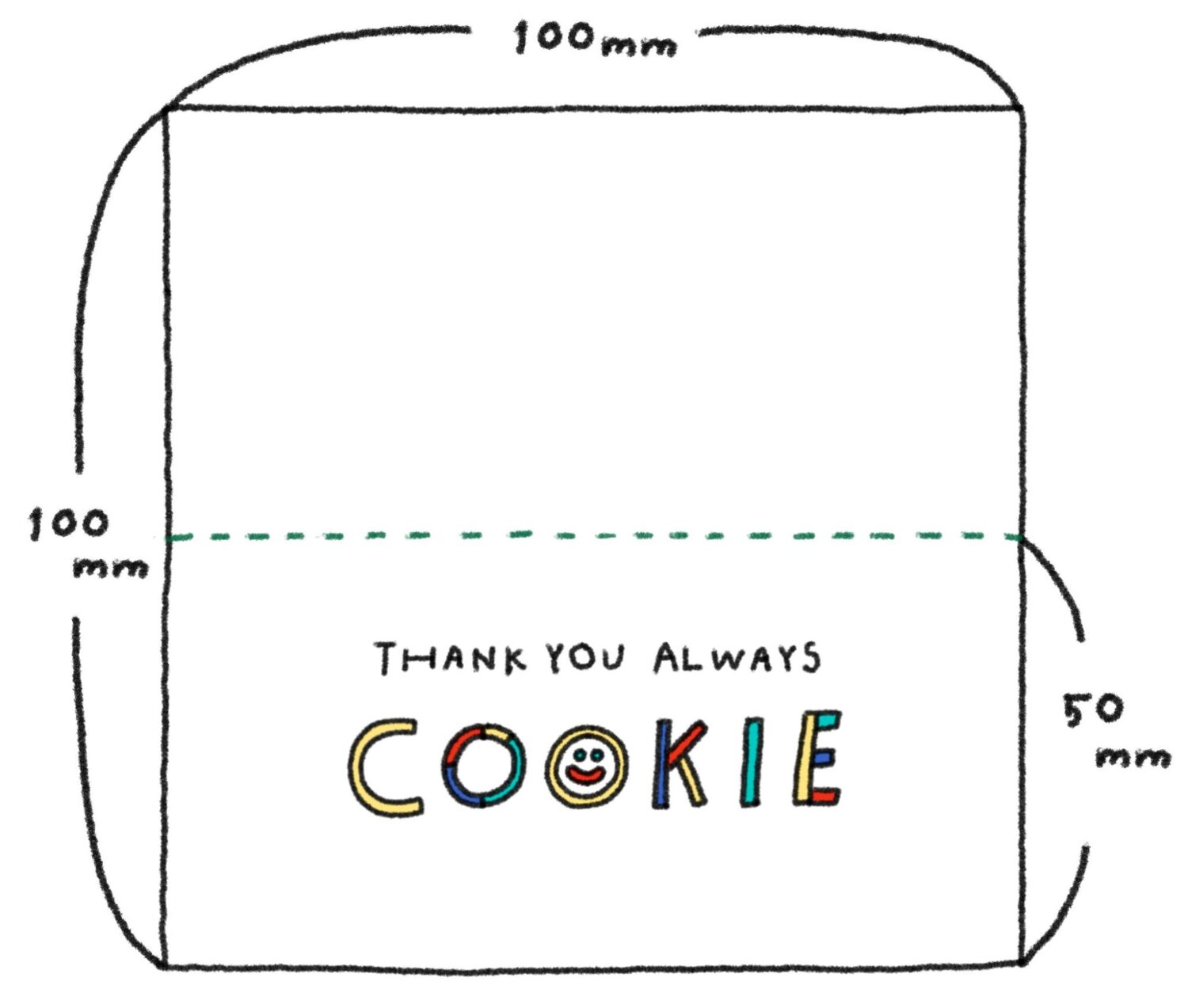 私は今回、95mm幅の袋に合わせて、100mm × 100mm(半分に折って50mm)の台紙を作成しました。