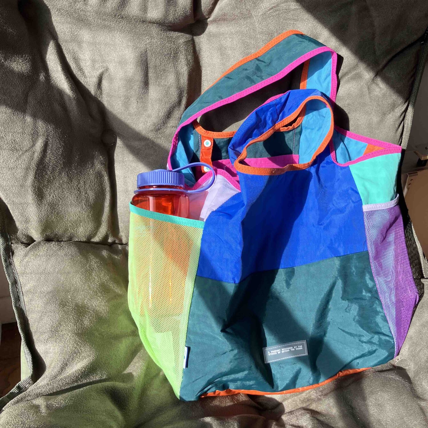 これずっと欲しかったんです。ついに手に入れました。心配性でマザーズバッグは大容量の大きなバッグだったのですが息子も大きくなり荷物もかなり減り、もう少し小さいサイズのベビーカーに乗せやすいトートバッグないかなあと探していたところ出会えました。マチがしっかりしていて自立するのにこれエコバッグなんです。ナイロン100なので軽くって付属のバンドに止めるとコンパクトに。