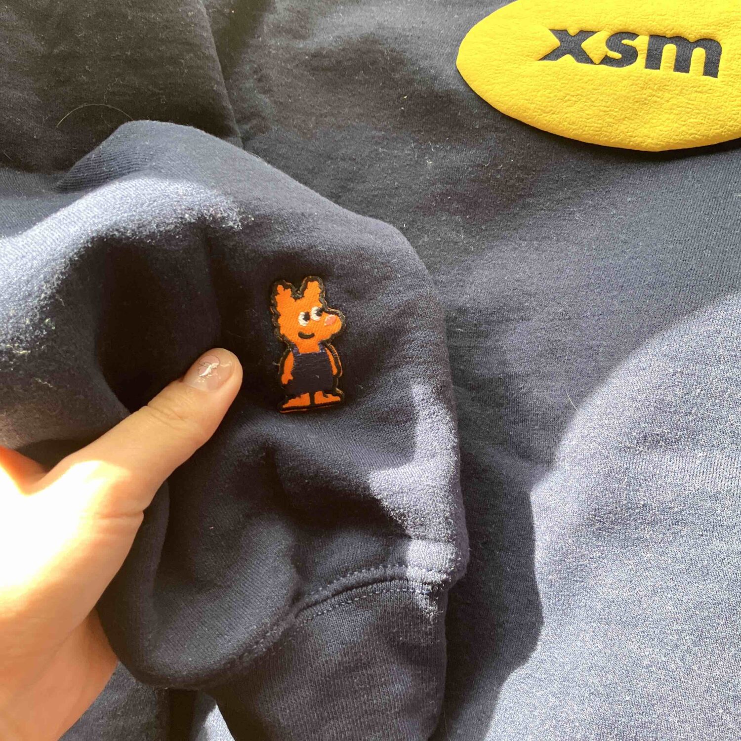 友達のケイトがデザインをしているxs marketのスウェット。同じデザインのTシャツを持っているのですが、このネイビーに黄色の配色がかなり使いやすいんです。ネイビーってこんなに肌を綺麗に見せてくれるんですねえ。