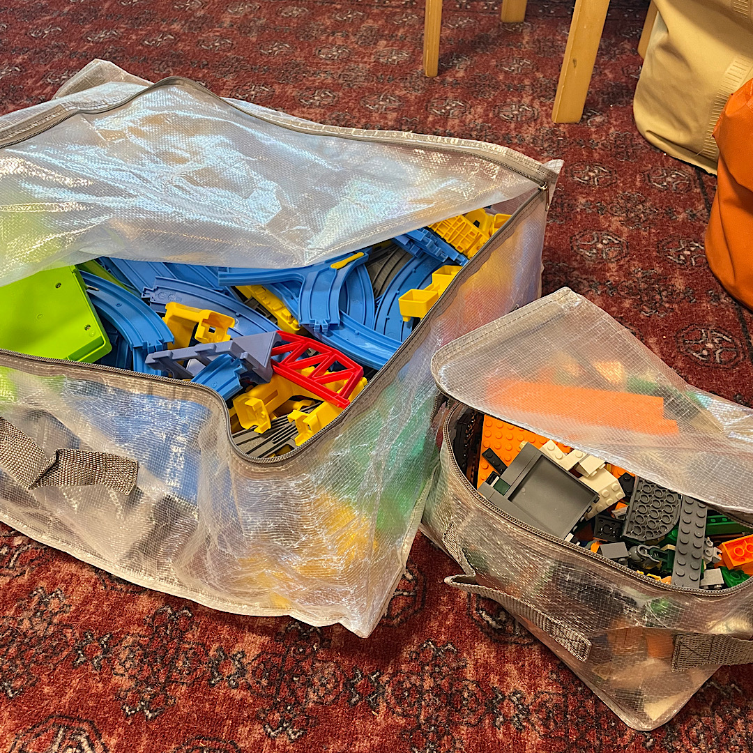 我が家はプラレールやレゴ等に使いソファー下の収納スペースにしまっています👆