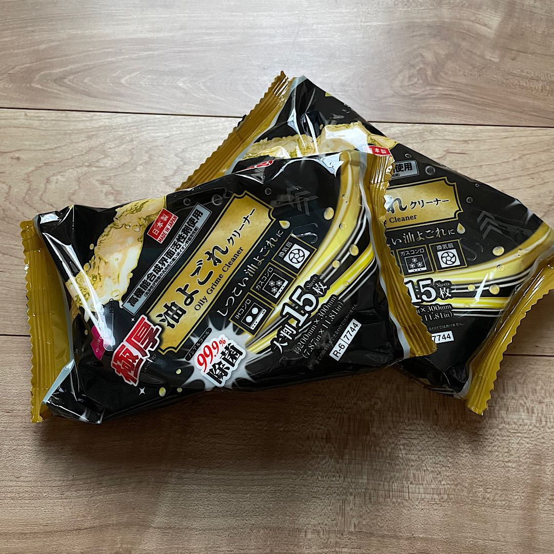 キッチンの壁や床などの油はねなどにもササッと使えて、100円なので惜しみ無く使えるのも嬉しいです!