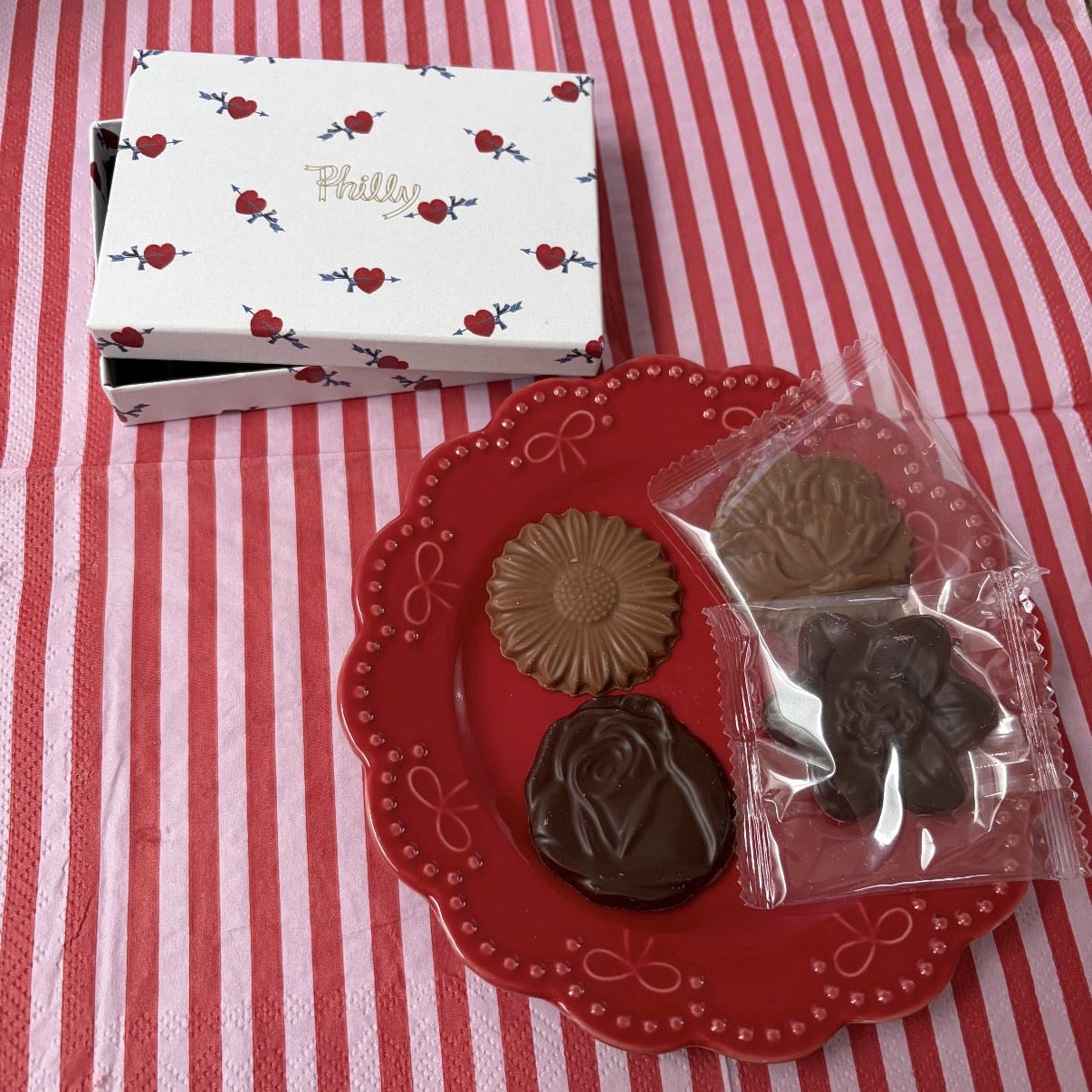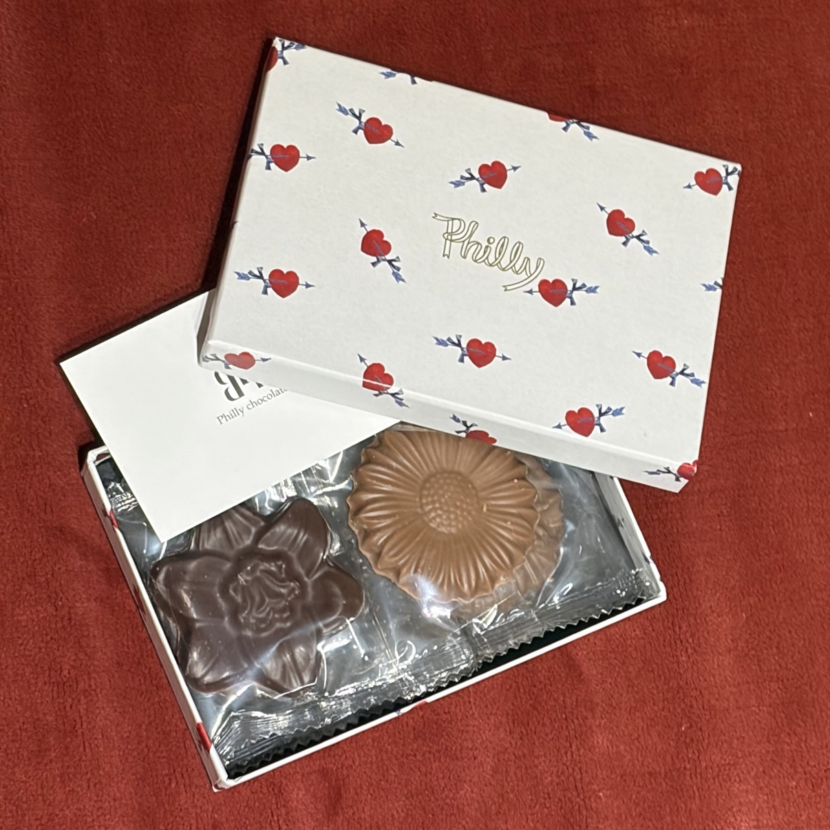 中を開けると 4枚すべて違うお花のデザイン のチョコレート🌸