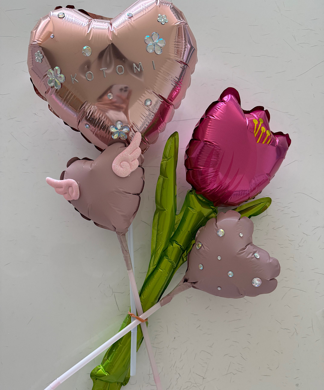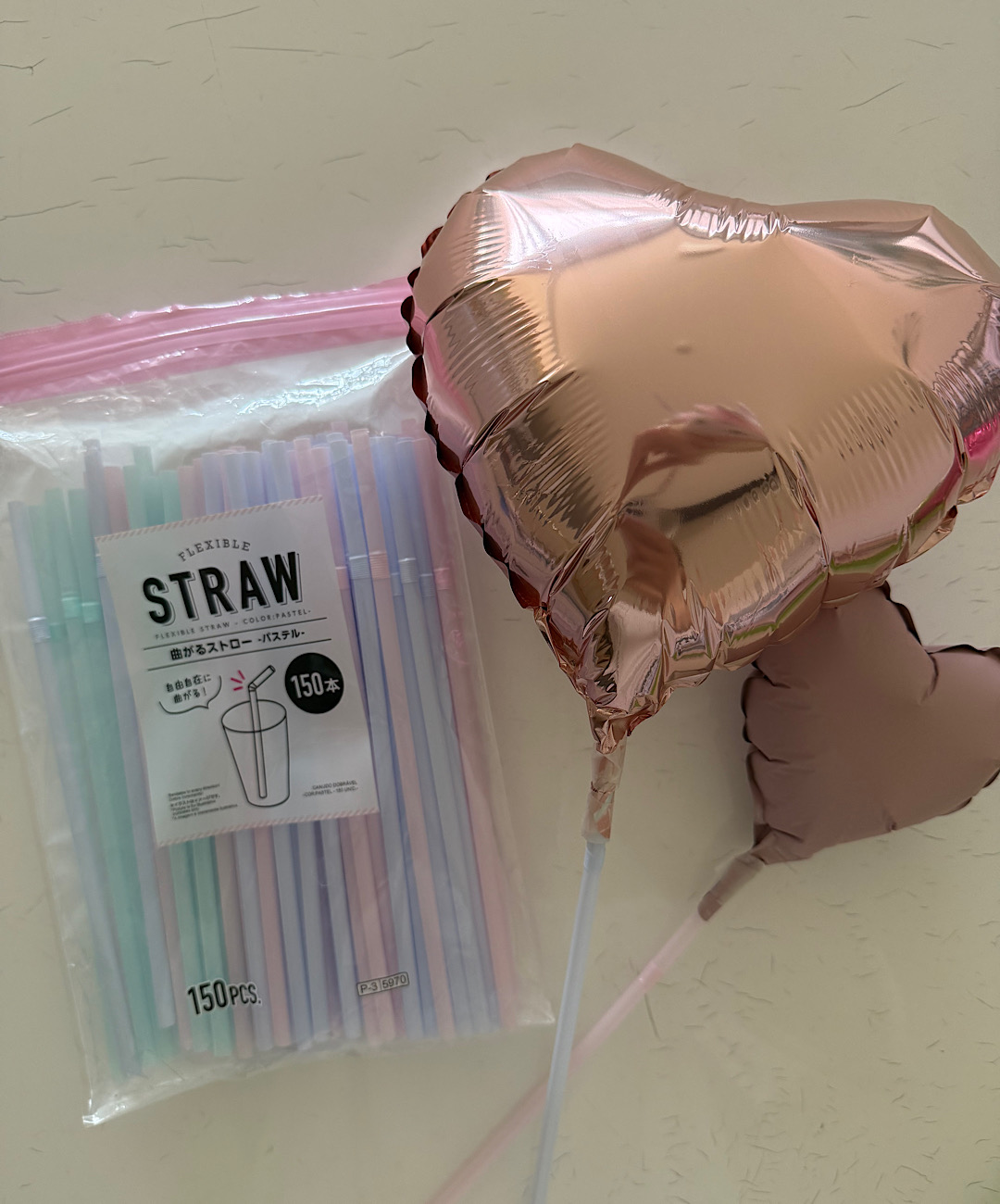 今回私はお花のバルーンが可愛かったので、このバルーンのみ袋から出し、ストローは袋の内側でカットしちゃいました♡