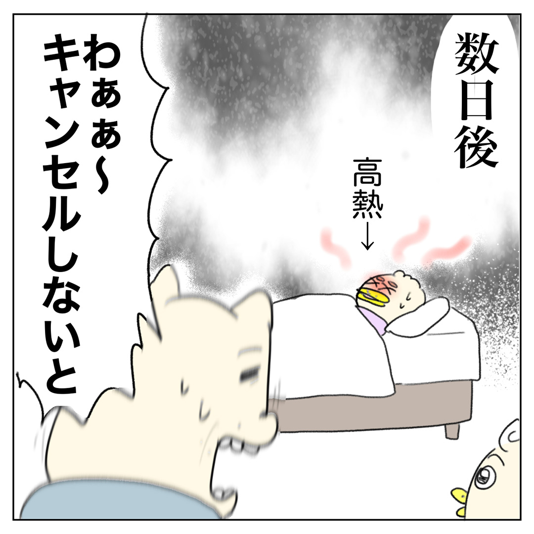 来週こそ行くぞ!! と勇んで予約したのに、その瞬間を狙ったかのように子が発熱。
