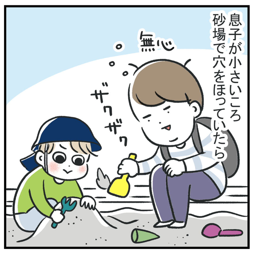 それはさておき、砂場には、レゴのパーツとか、ビーズとか、たまにお宝(?)が埋まっていて、