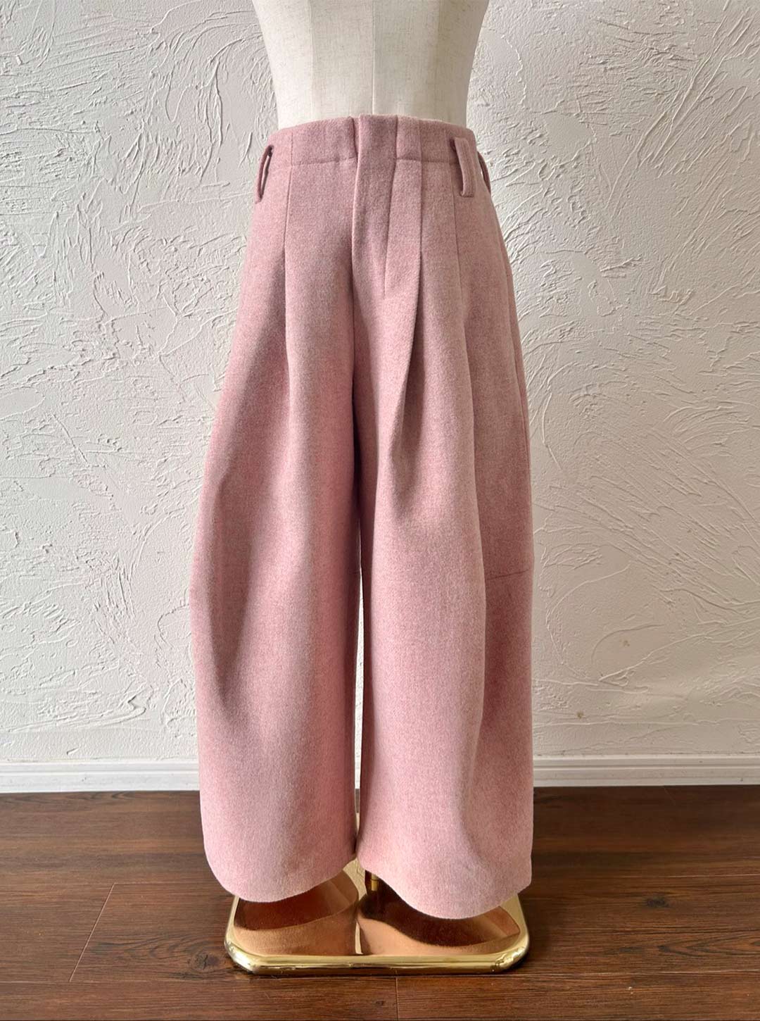 さらに、『THE FAB CLUB』の「ARCHITECTURAL WOOL WIDE PANTS」は、冬の景色の中でやわらかく映えるカラーが魅力。